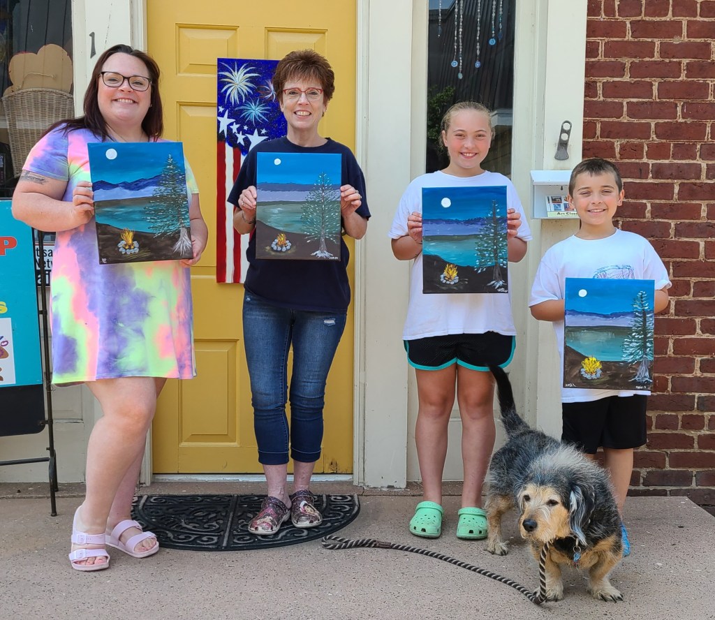 Yesterday we had a private party that was a Christmas gift and they were finally able to come and paint together. They did a great Camp Fire scene. Very nice work by all our painters. They had so much fun they are already talking about the next time.
