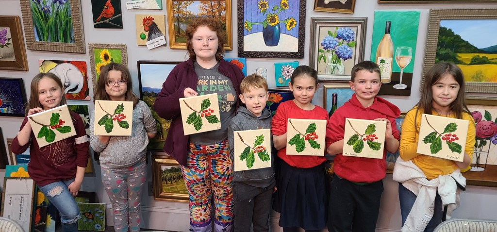 Our Wednesday Kids did an amazing job painting a Holly Sprig yesterday. We’re prepping for the holidays. Nice work everyone!