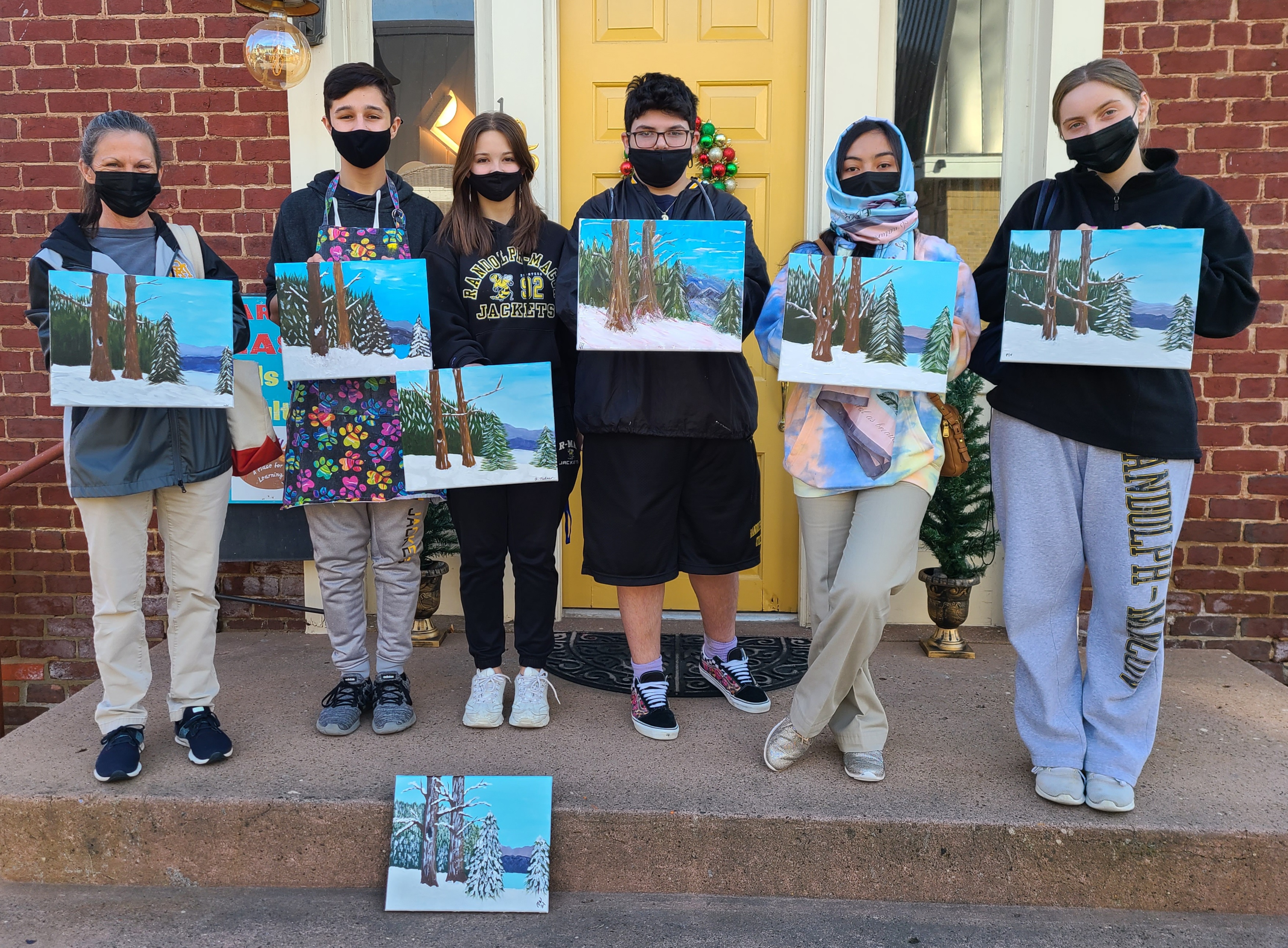 We had an enthusiastic group from RMA today painting a beautiful winter scene. Nice work all around.