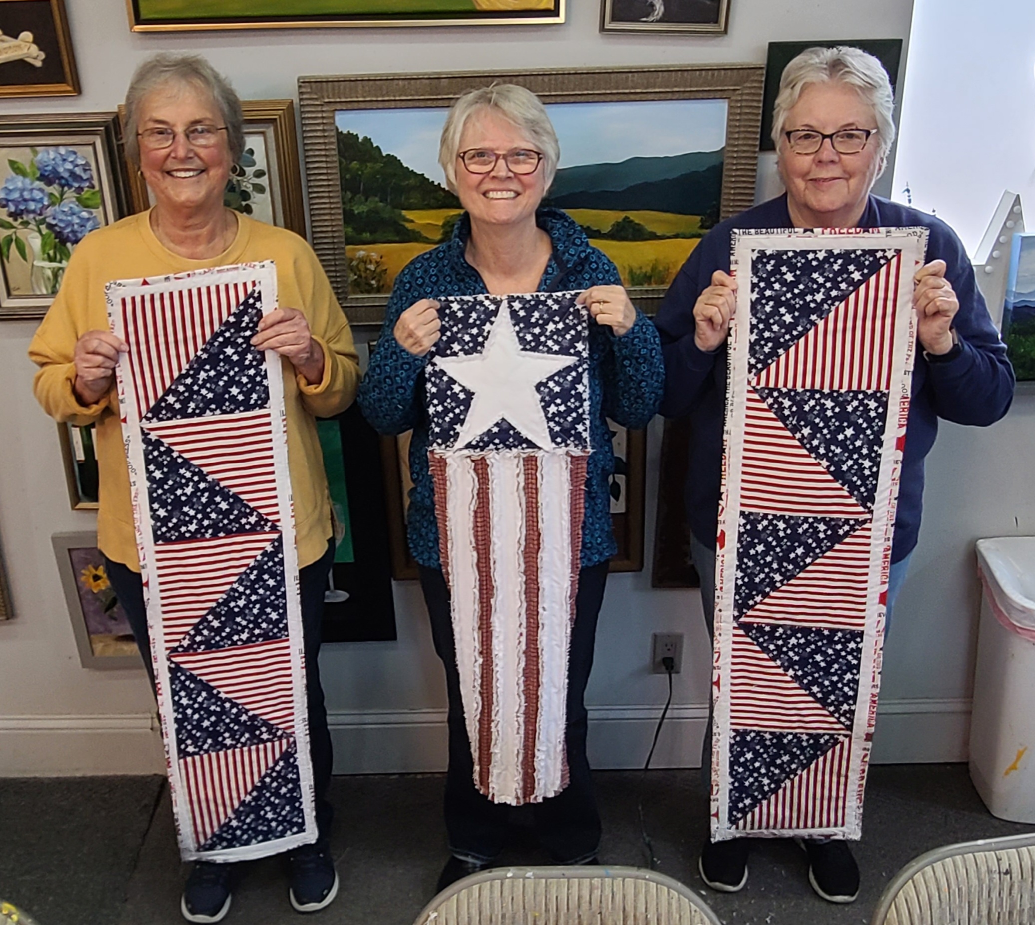 Nice job ladies!!! I love the Patriotic Table Runners that you all made yesterday afternoon. It was fun sewing and laughing with you all. Great work!!!!