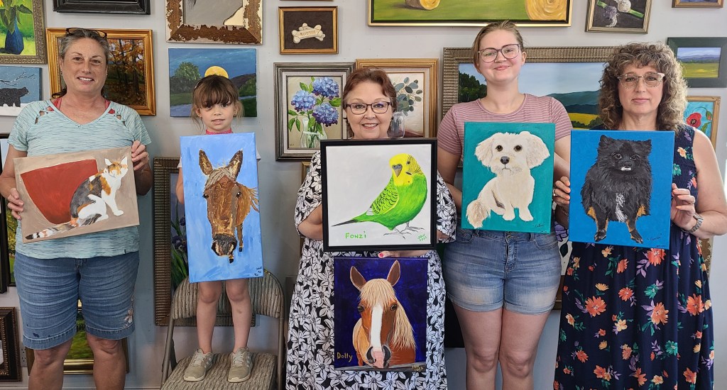 We had a great time painting pets yesterday at The Studio. Don’t they look GREAT???!!!! I especially love Kai’s horse. Amazing!!!