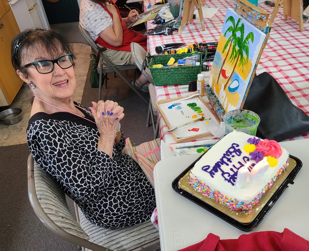 This week at our Thursday Art Class we celebrated Tilly’s 91st Birthday. She is my oldest and most fashion forward student!!! We all love her and her enthusiasm for life and art. Happy Birthday Tilly! We look forward to celebrating many more with you.