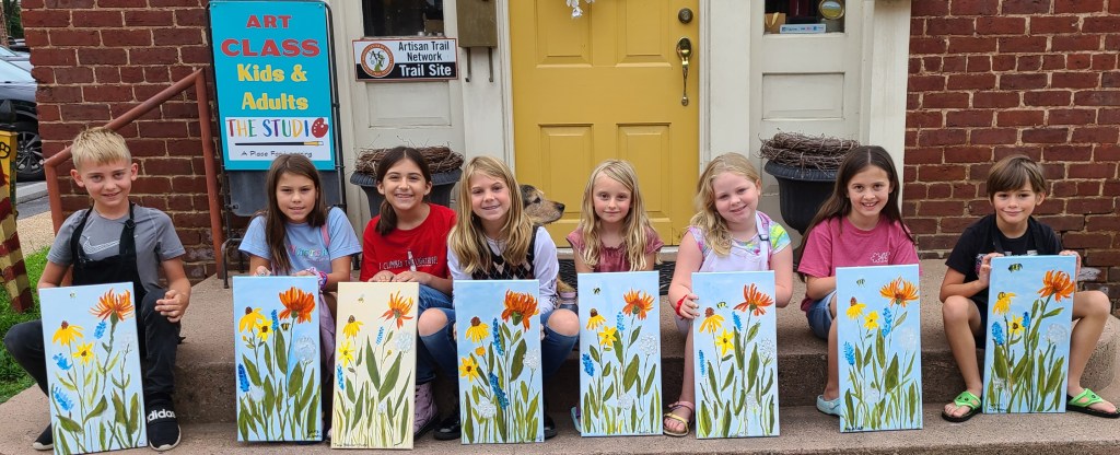 Our “Nature: Flowers and Trees” week continues at The Studio with these beautiful flower paintings. Didn’t these young painters do an amazing job on these???!!!! So pretty. We’ve got a great group of painters this week.
