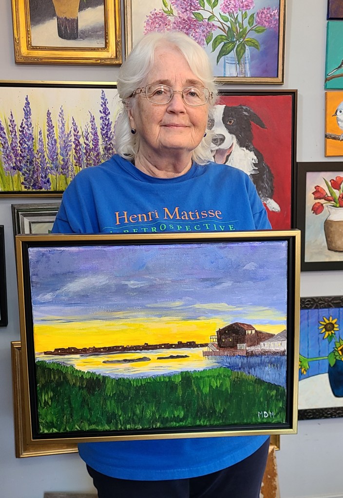 Dianne has recently started painting and she often paints gifts for family. This one she just completed for a relative who loves this view. She painted it so he can enjoy it even when he can’t come see it. Nice work Dianne. Why don’t you join us at weekly art classes and start painting too?! See more info here.