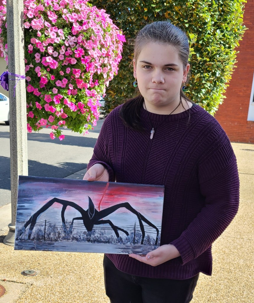 Kyle just completed this one based on Stranger Things. He’s just started painting with us recently along with his grandmother, Mary, and he’s doing great! You can paint too. Join us on Wednesday or Thursday for classes at The Studio. Contact Kelly at kwalker@kellywalkerstudios.com for more information. Come paint with us!