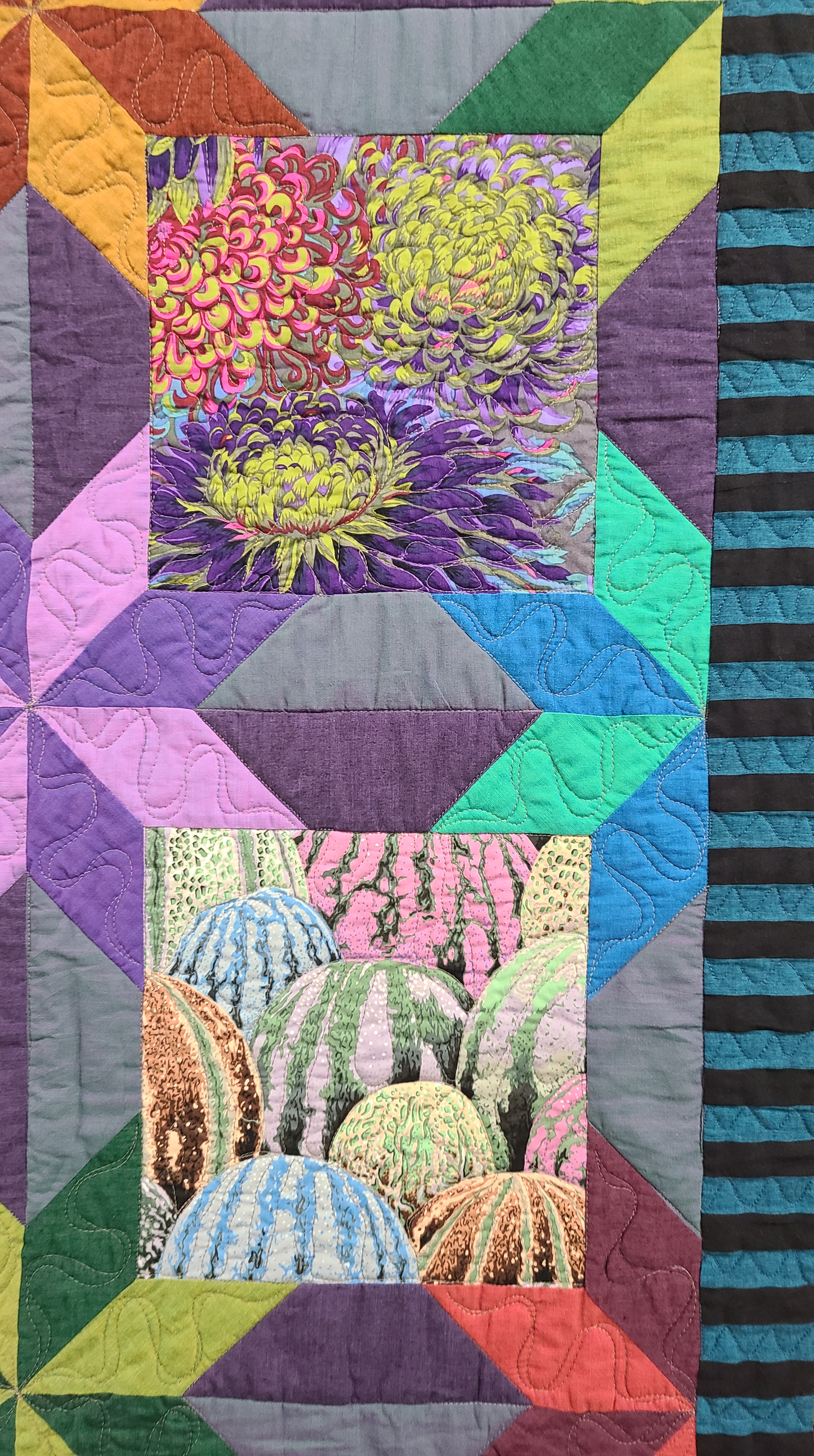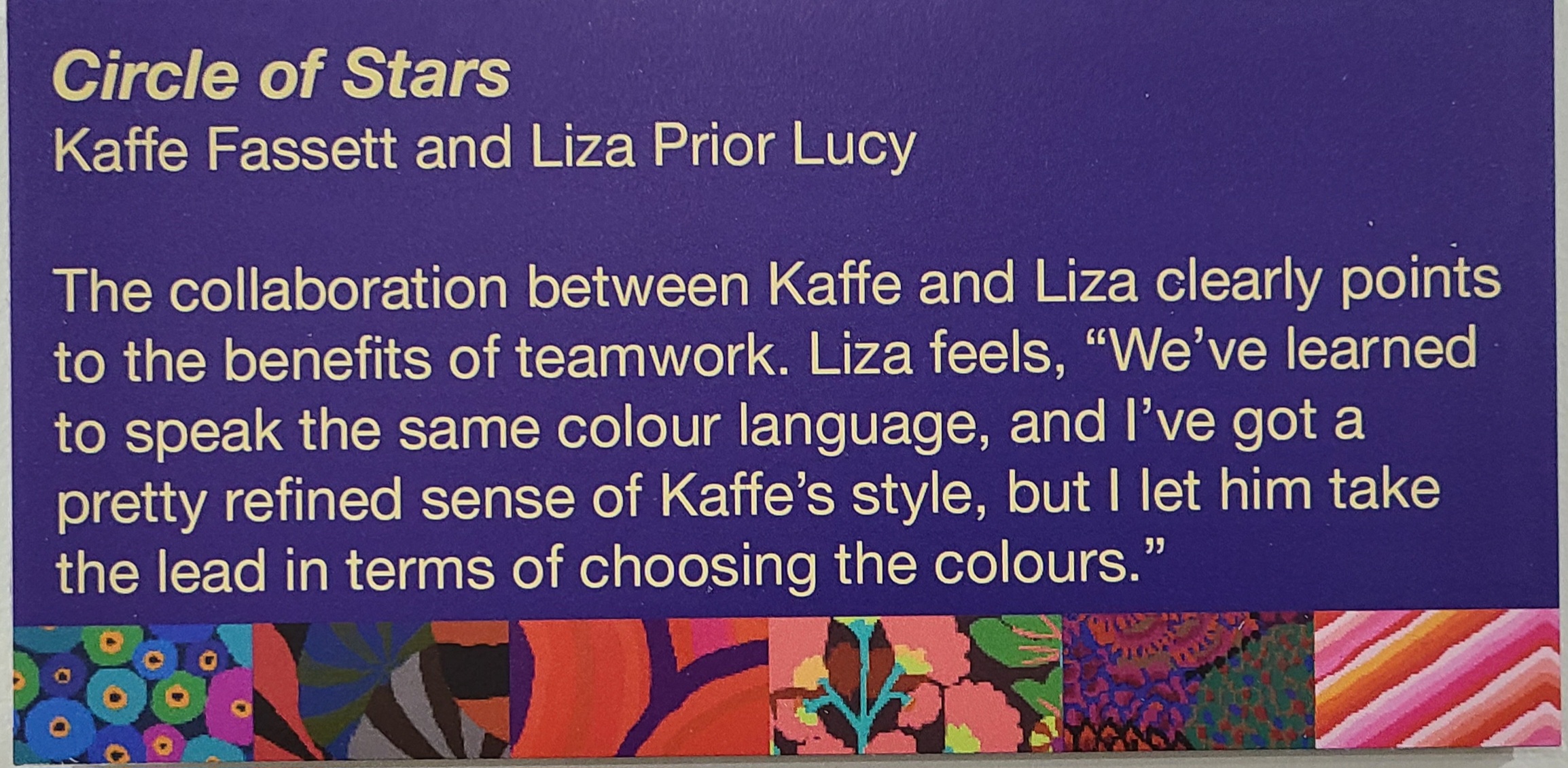 Here is the description of the Kaffe exhibit on the National Quilt Museum website: Kaffe-85 and Fabulous!