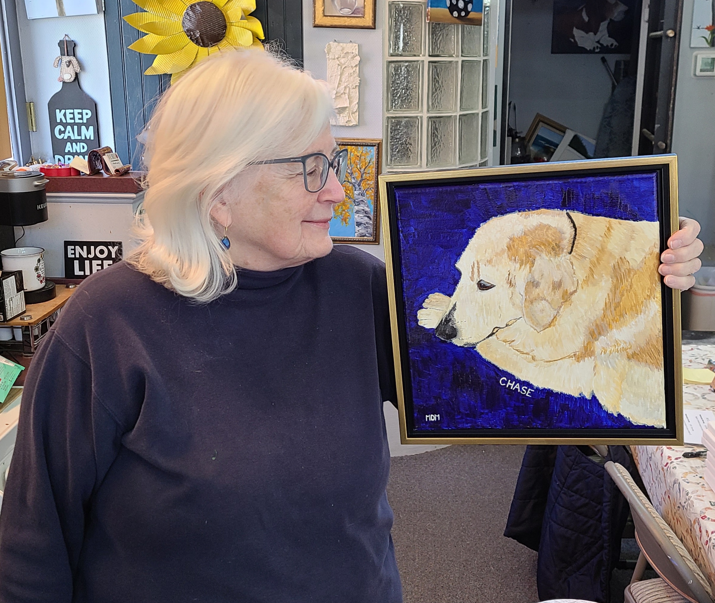 We spent the day in Hamilton Missouri better known as Quilt Town USA due to the Missouri Star Quilt Company. Jenny Doan and her family started a small quilting business there 15 years ago that boomed into 12 shops and a very successful online business. Jenny does terrific YouTube instructional videos on quilting and has become a star in the quilting world. On the way to Hamilton we listened to Jenny’s autobiography – How to Stitch an American Dream: A Story of Family, Faith and the Power of Giving. It made the visit to Hamilton even more interesting knowing how it all started. The first thing we did was go on a tour of the warehouse to see how it all worked. So interesting to see, especially the 30 long arm quilting machines they use to quilt all the projects that are sent to them. They do about 500 a week! WOW!!! Even though it rained most of the day we still had a great job shopping the 12 MSQC along the street. There were 5 quilters on the trip and one of our friends couldn’t make it at the last minute so we took her along in spirit and had photo ops with her along the way. You see a photo of her here with Barbara checking out BLOCK magazine – a production of MSQC. Then we loaded up the van to go again.