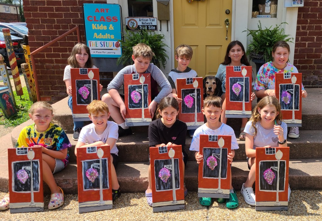 We started our last week of Art Camp with “Paint the Valley” week. Our young painters created a beautiful canvas of the hanging baskets on Main Street. Aren’t they GREAT???!!! Wait until you see what they do today.
