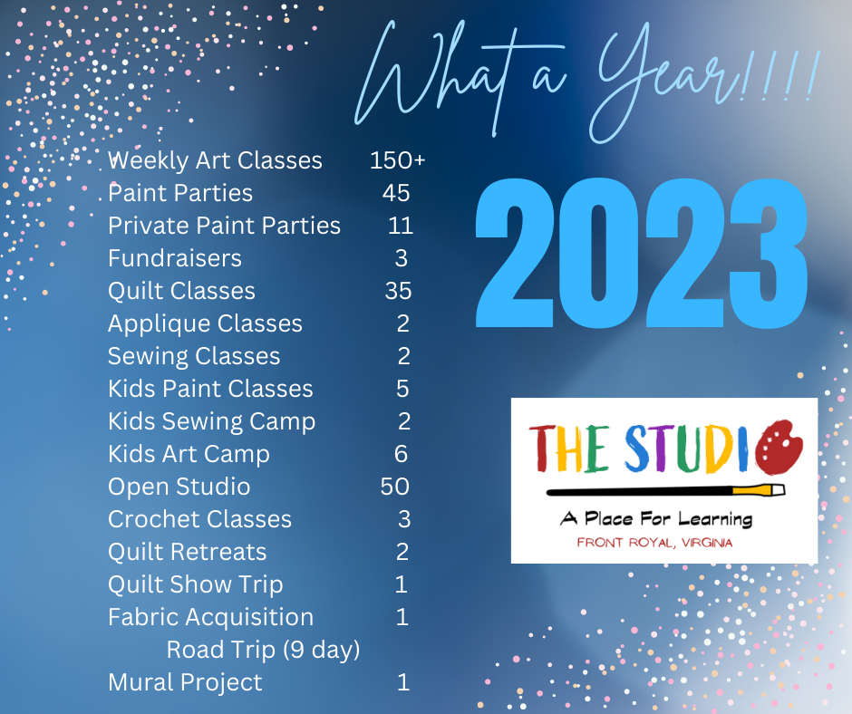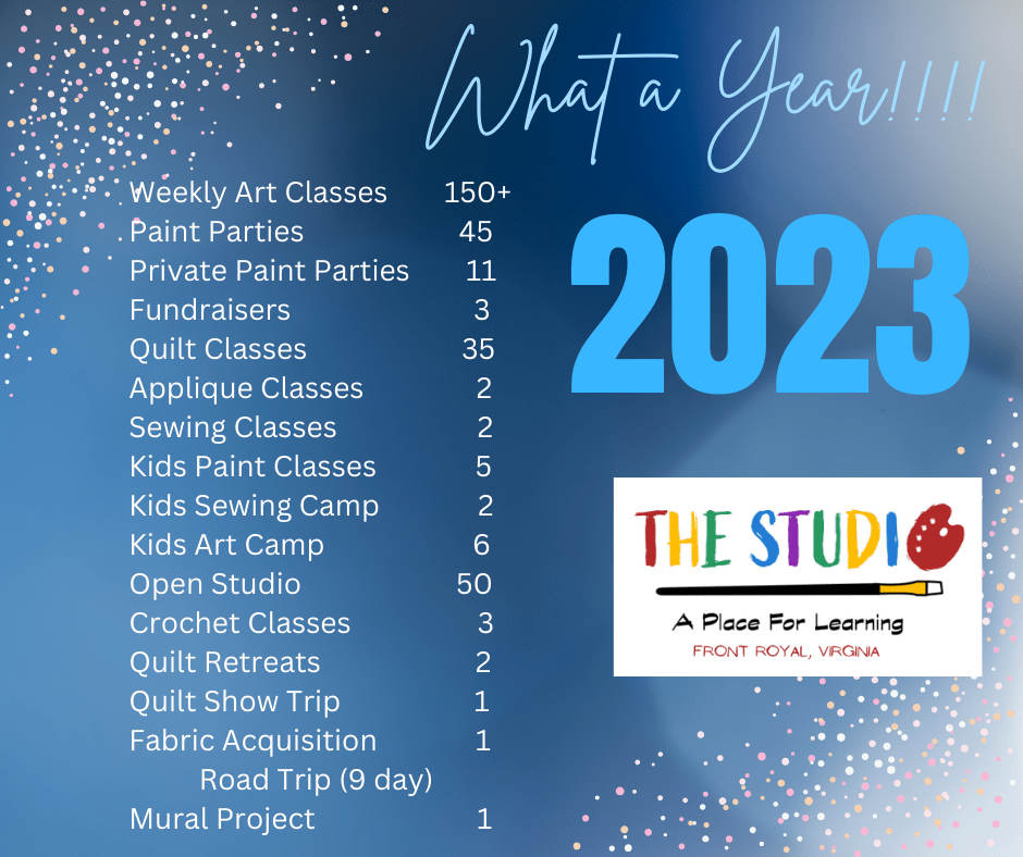 Here is a snapshot of the 2023 Year for The Studio. It’s been a great year! We have some exciting changes coming in 2024. Stay tuned tomorrow for more information.