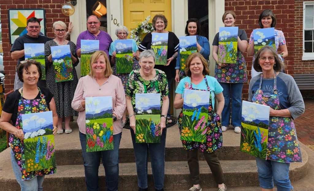 We had a large group of painters use both brush and palette knife to create lovely wildflowers and mountain images today at The Studio. Everyone did a great job and had fun learning a new way to paint! Learning something new is always fun!!! Since this one sold out fast we are offering another similar painting in brush and palette knife so if you want to try this way of painting you can. Join us on Tuesday, May 21st to give it a try. Click here for more information and to register.