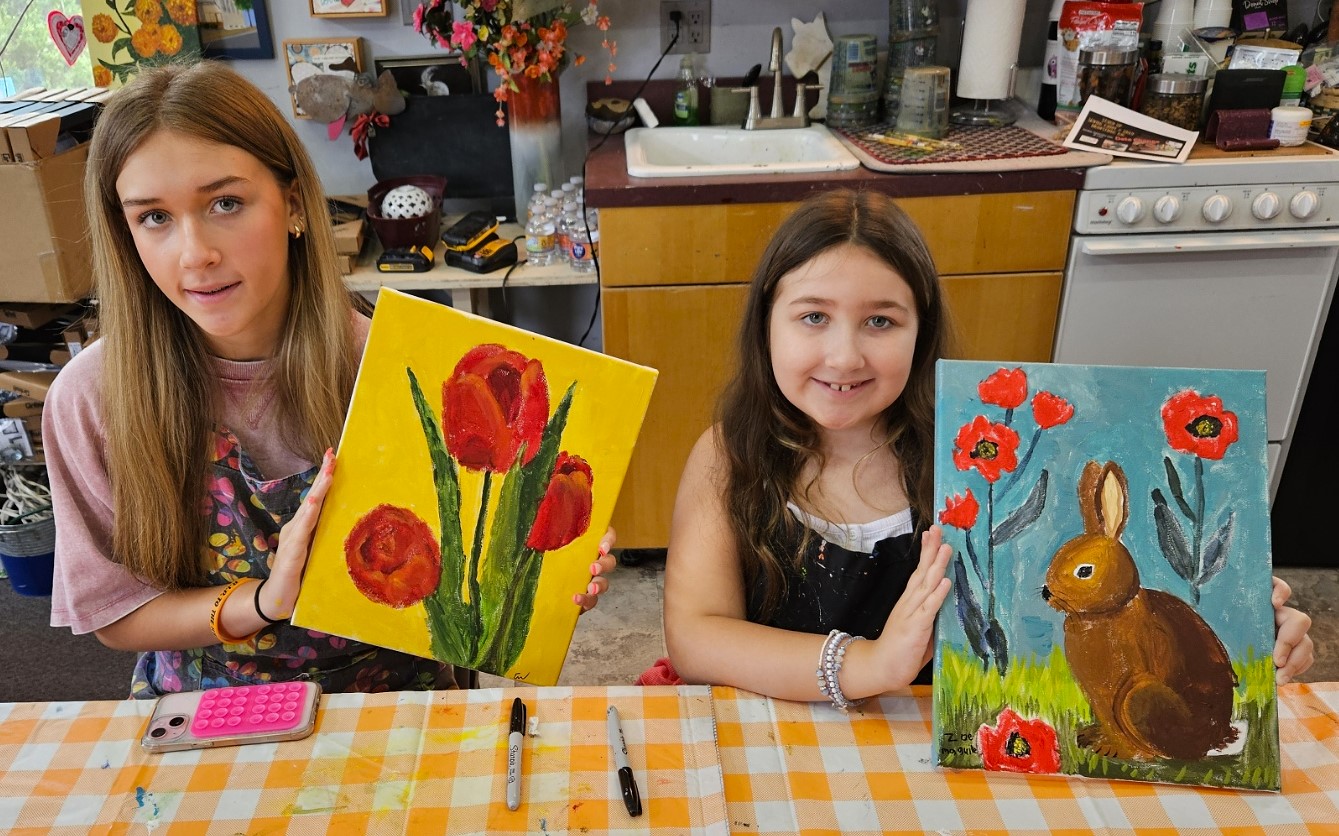 From time to time I get requests for private lessons when grandchildren are here visiting their grandparents in the local community. That happened yesterday when I got to work with Emma and Zoe. They are in from New York spending time in the area and their grandmother hooked them up with an art lesson. They did great!