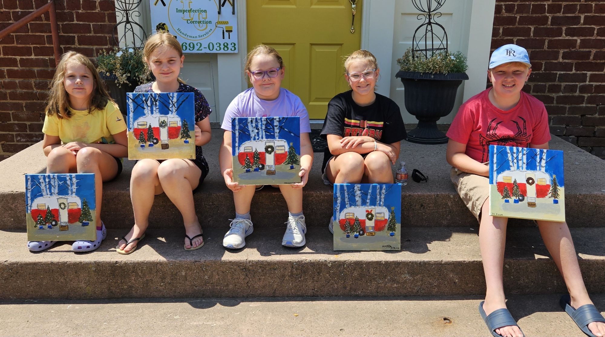 Yesterday we had a great group of young painters who helped us kick off our Christmas in July Art Camp week. Take a look at their Holiday Campers! Aren’t they fabulous???!!!! We had a terrific time painting together and are looking forward to a fun week of holiday paintings. Stay tuned.