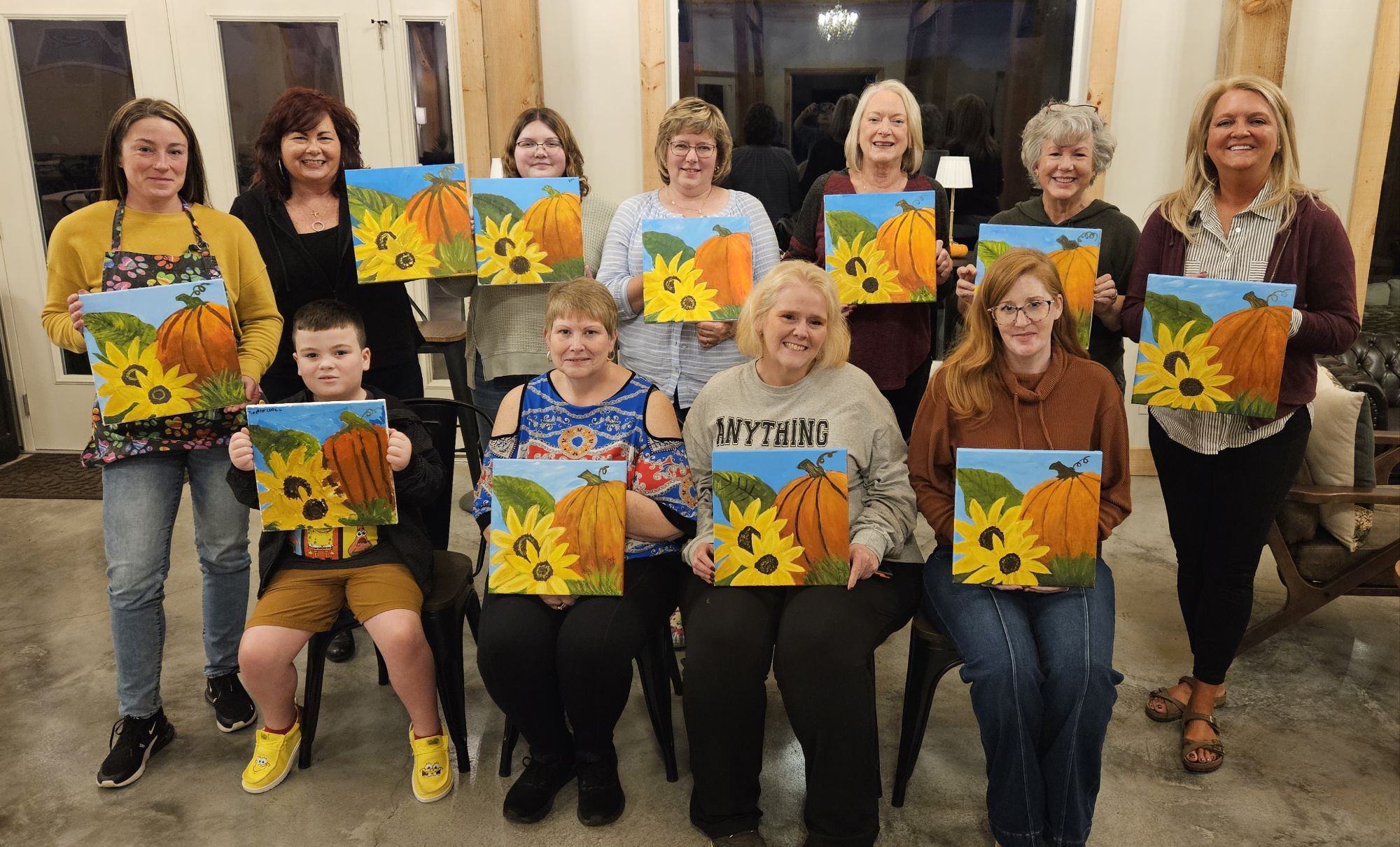 We had a great time painting this Pumpkin & Sunflower canvas at Reitano Vineyard last night. Everyone did a fabulous job!!!! Keep up the good work. And check out the next one coming up on November 14th. Go here to register with Reitano Vineyards.