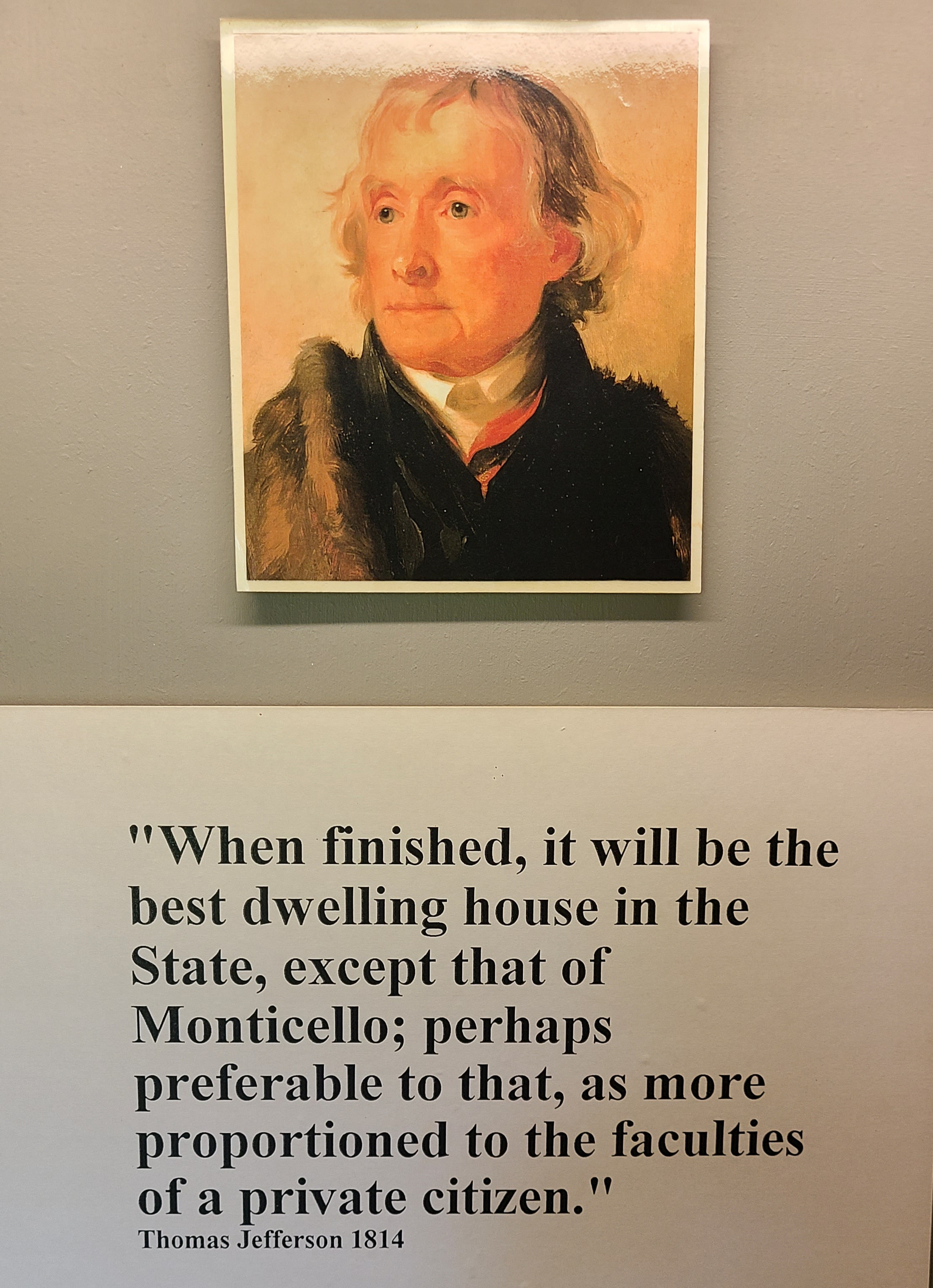 We had a couple of days away to recharge our creative juices. On the way back home we stopped at Poplar Forest, Thomas Jefferson’s Retreat. They are doing so much work there restoring the structure to the way he had it originally. It’s so amazing that they have so many documents that Jefferson wrote to tradesmen describing what he wanted. It will be even more amazing when completed. Click here for more information on Poplar Forest.