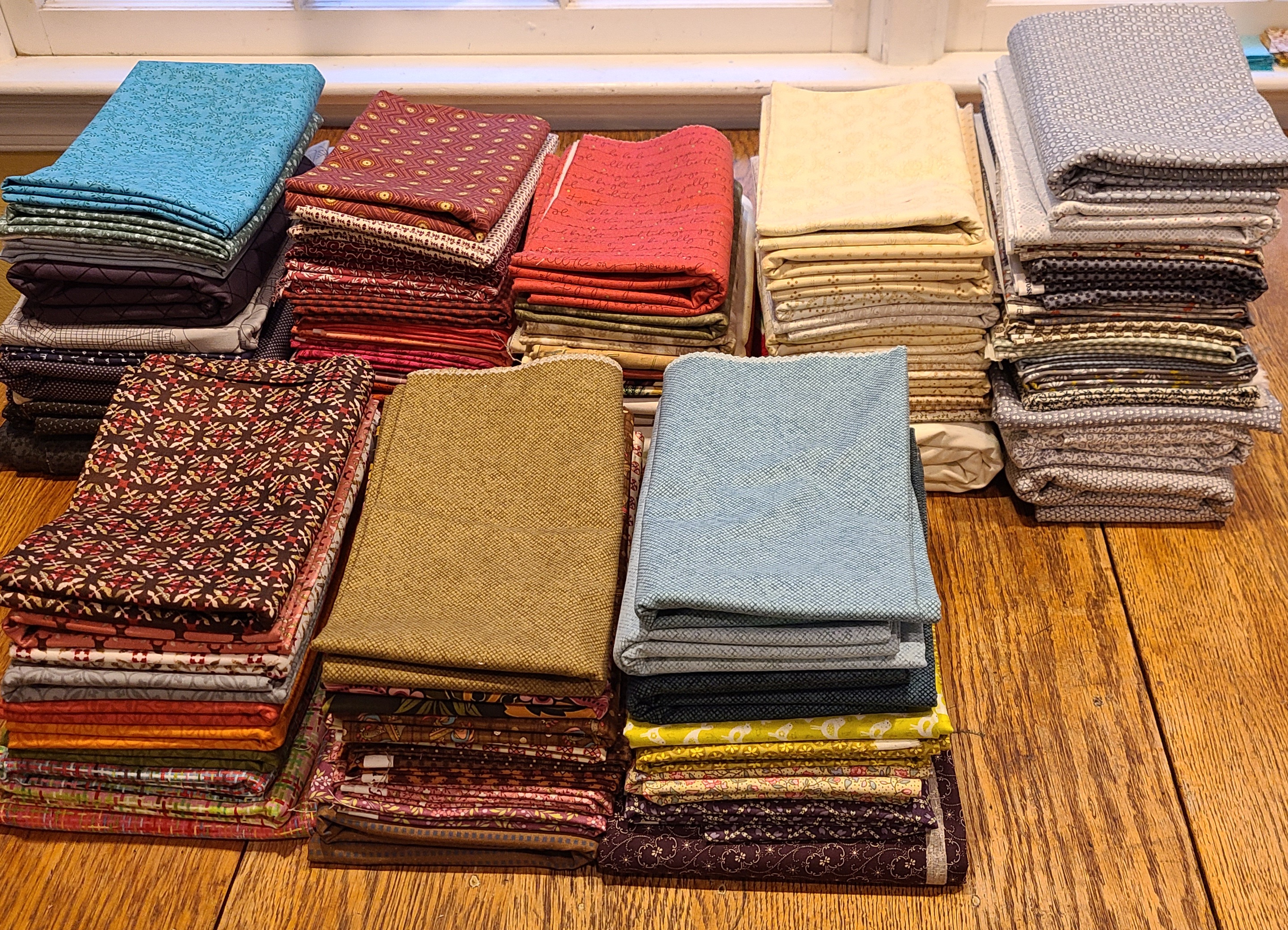 We had a delightful group of quilters that went on our quick trip to the Pennsylvania National Quilt Extravaganza at Oaks PA on Thursday and Friday. We attended the show on Thursday and saw hundreds of amazing quilts and got some great ideas. We shopped the vendors at the show and then had a great dinner and turned in early Thursday night so we could hit the road early Friday morning for our F.A.R.T. (Fabric Acquisition Road Trip). And acquire fabric we did!!!! We hit 5 of our favorite shops…Zinck’s, Good’s Store, Old Country Store Quilts, Log Cabin Quilts and Burkholders. What a whirlwind! We flew into each shop and all 8 of us found some treasures. (And let me say that these ladies were an amazing group with which to travel. So compatible and up for all adventures!) We loaded up the van and headed home. We were all good and tired when we got home last night but also excited and full of ideas of new projects. I can’t wait to see how all that amazing fabric turns out. If you love sewing and/or quilting be sure to watch for our new Open Studio time just for you!