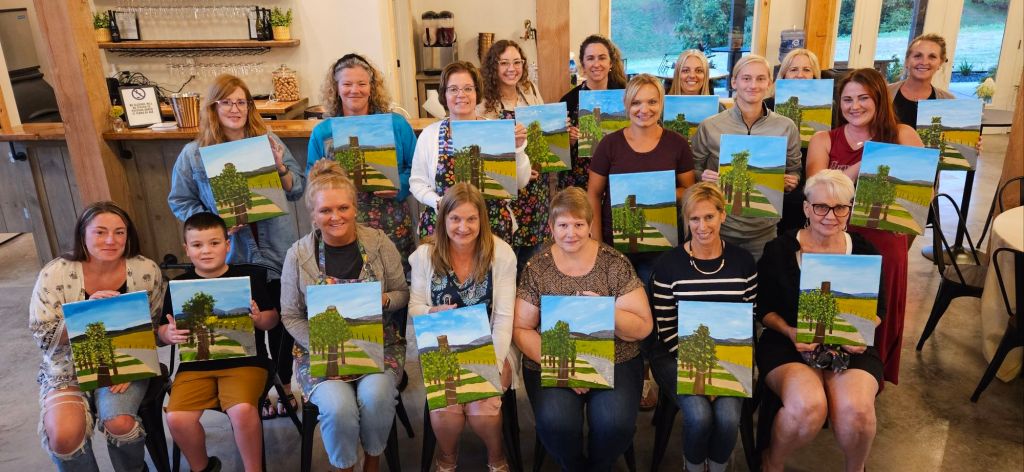 We had our first Paint & Sip at the beautiful Reitano Vineyard last night and it was a huge success! Everyone did an amazing job painting a scene of the vineyard while sipping a little wine, enjoying some terrific snacks and having a great time with friends. If you missed it, you missed a great event. But don’t worry….we will be doing another one on Thursday, September 12th. So plan to come for the next one. You’ll be glad you did. Watch for the registration information coming soon.