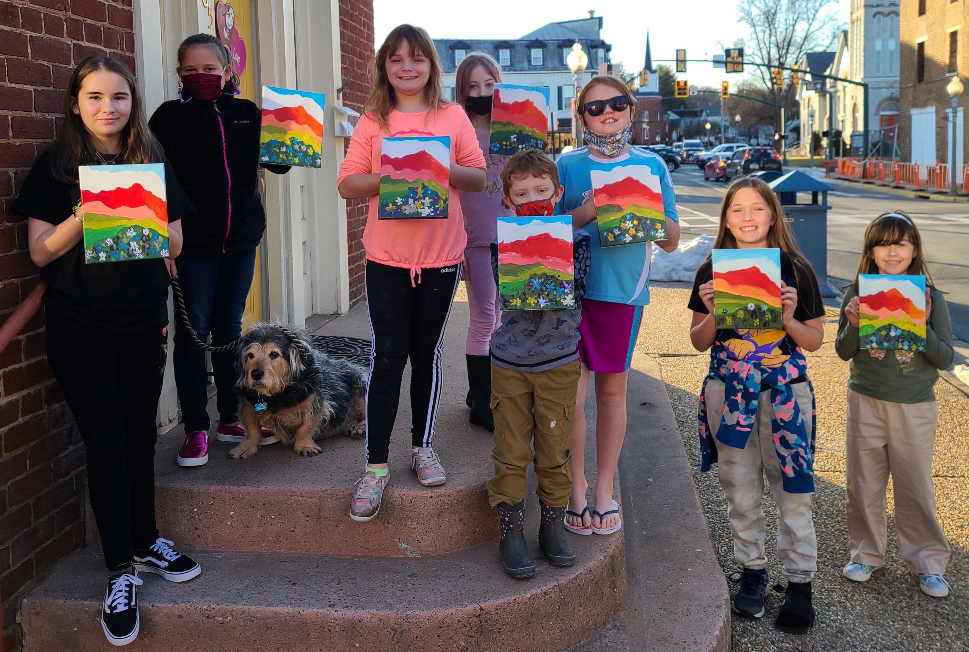 The Homeschool Kid’s Class created abstract landscapes yesterday at out Thursday 11 -Noon class. Didn’t they do a GREAT job?! Lincoln thought so…and he snuck in a little kiss. Our Homeschool Kids class is the 1st and 3rd Thursday from 11 – Noon for ages 5-12. Contact kwalker@kellywalkerstudios.com to register.
