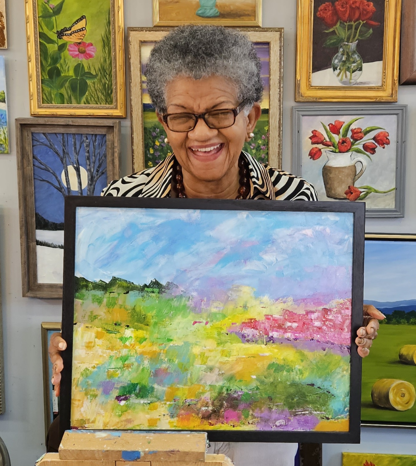 Loretta loves trying new things. She just started painting with us at The Studio a few months ago. She loves to paint BIG and is up for trying every new thing. The past two weeks she created this abstract landscape piece with a palette knife. Great job Loretta. If you would like to try out new things come paint with us at The Studio on Wednesdays or Thursdays for art class. Contact kwalker@kellywalkerstudios.com to sign up.