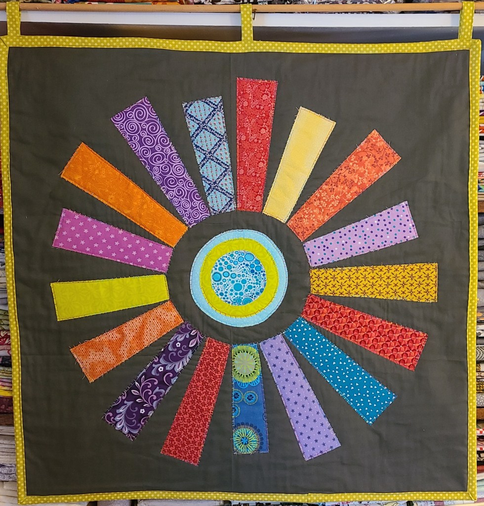 This funky Retro Flower wall hanging is another example of raw edge applique that you can learn to do at our upcoming class. Don’t you want to give it a try?! Check out some of the other examples here and here. And click here to register for our class in January.