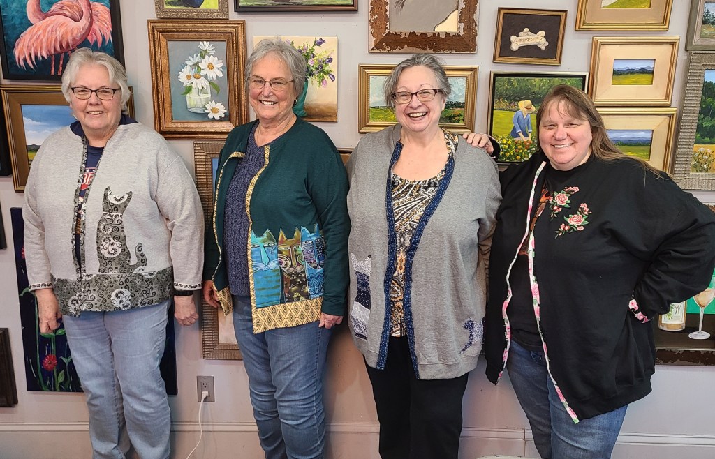 Like any good quilter I couldn’t bear to discard the cat cutout from the dog and cat applique that I posted yesterday. See it here. I didn’t need it for yesterday’s project but he was too cute to throw away. So this morning I thought I would rework a sweatshirt and turn it into a cute “Cat Cardigan”. And here it it! I bought a bunch of sweatshirts several years ago to do another project and never did use them all so I dug one out and pulled some fabric from the stash for the bottom and trim and appliqued the little cat on it. I think it works!!! So here is another idea for applique for those who are coming to the class in January. Learn more about the class and be sure to sign up for it here.