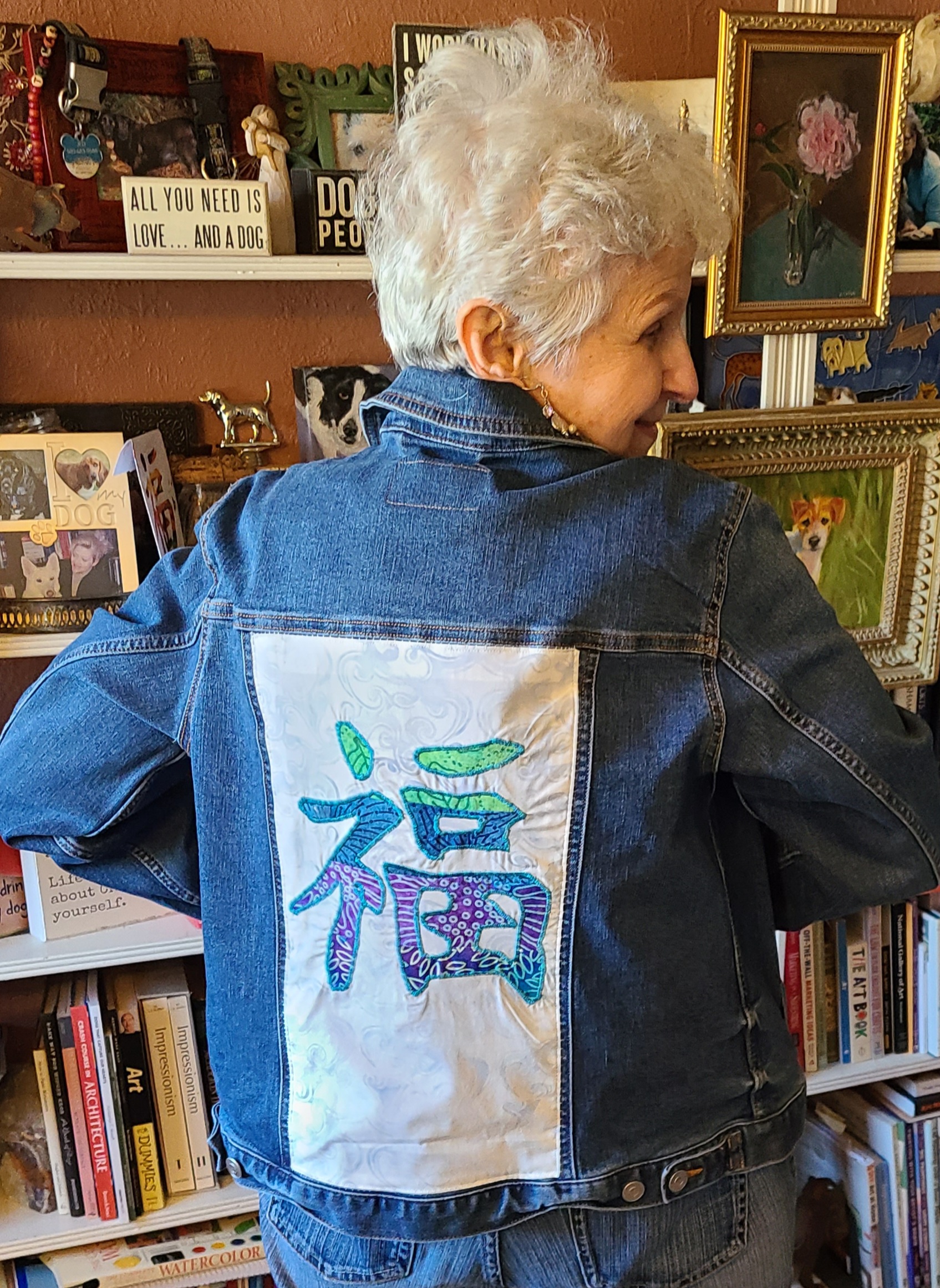 I mentioned yesterday that I had another Jelly Roll applique that I was working on as an example for an upcoming class. Here it is…a little Best Friends wall hanging. This is just an example of what you can do with machine applique. We will have a class at The Studio on Saturday, January 7th at 1 pm if you would like to learn this fun technique. There is so much you can do with it from quilts to wall hangings to jackets to jeans. Applique works for a lot of different projects. Come learn how. Click here for more information and to register. Space is limited so don’t wait too long to get in on it!