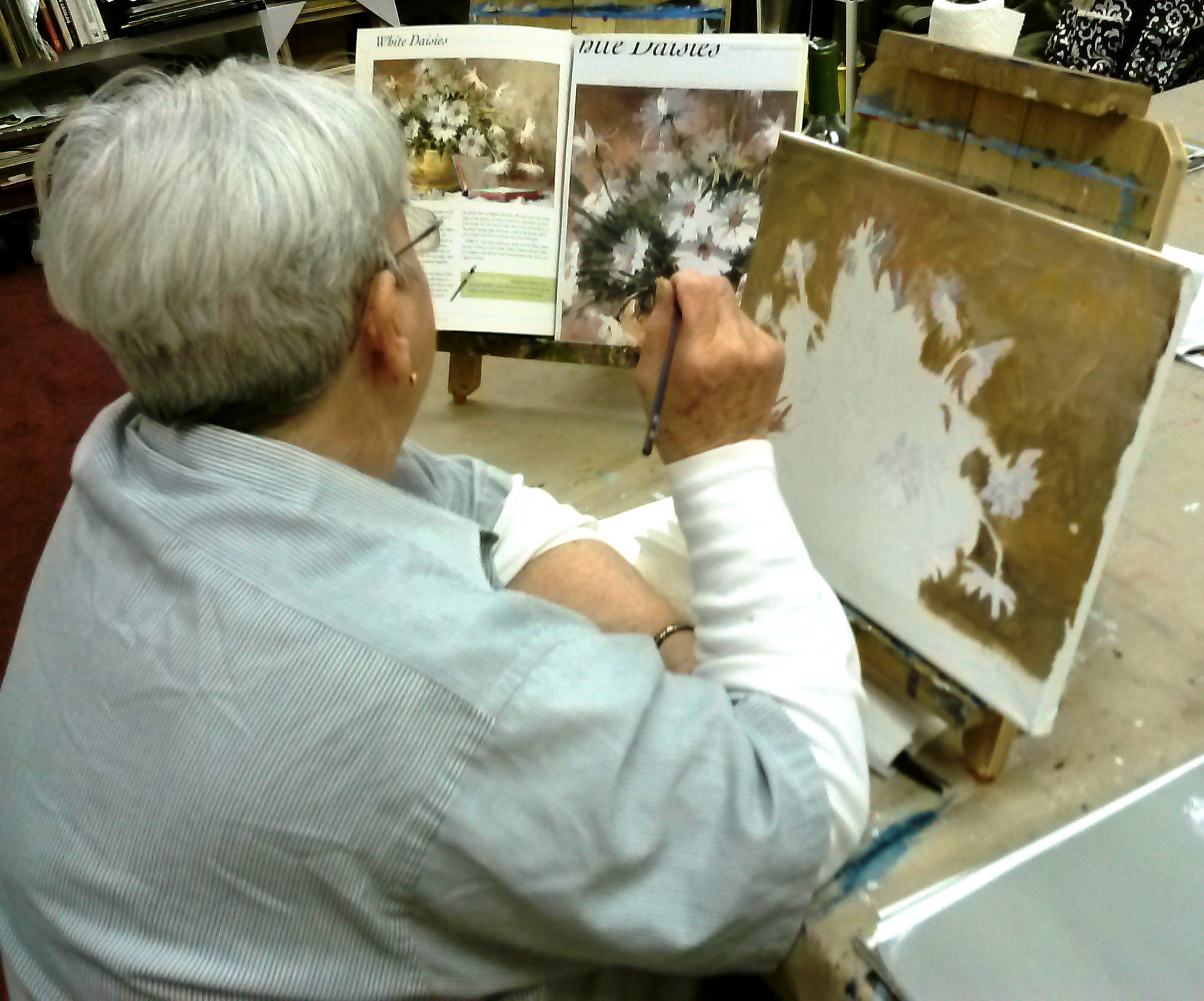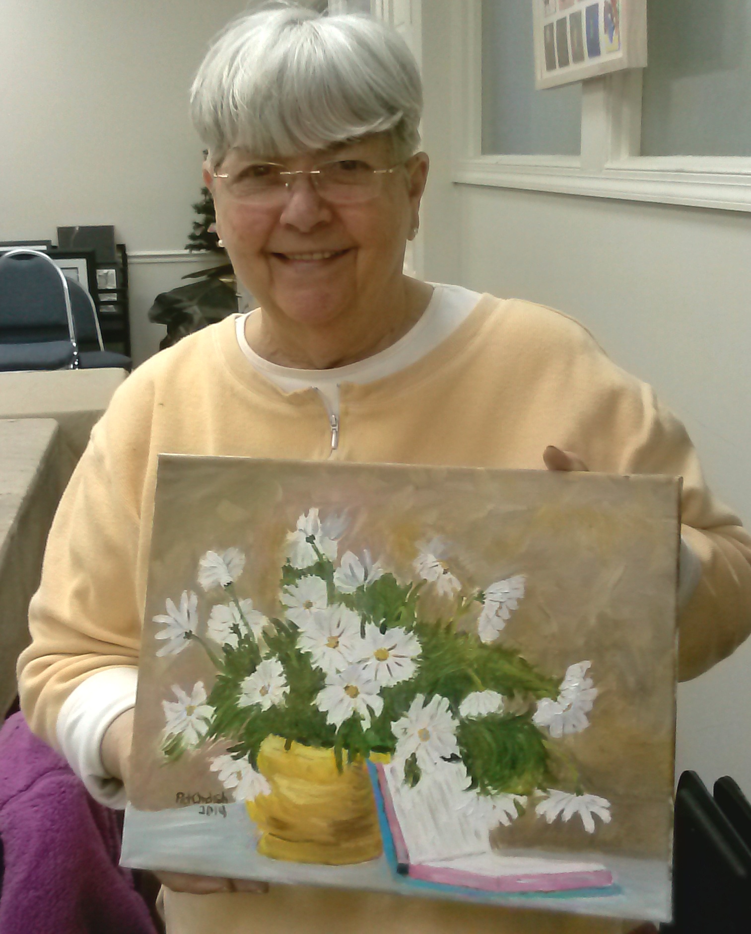Last night Pat completed her daisy painting that we saw her working on last week. (Check that out here.) It looks terrific! Great job Pat.