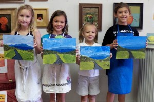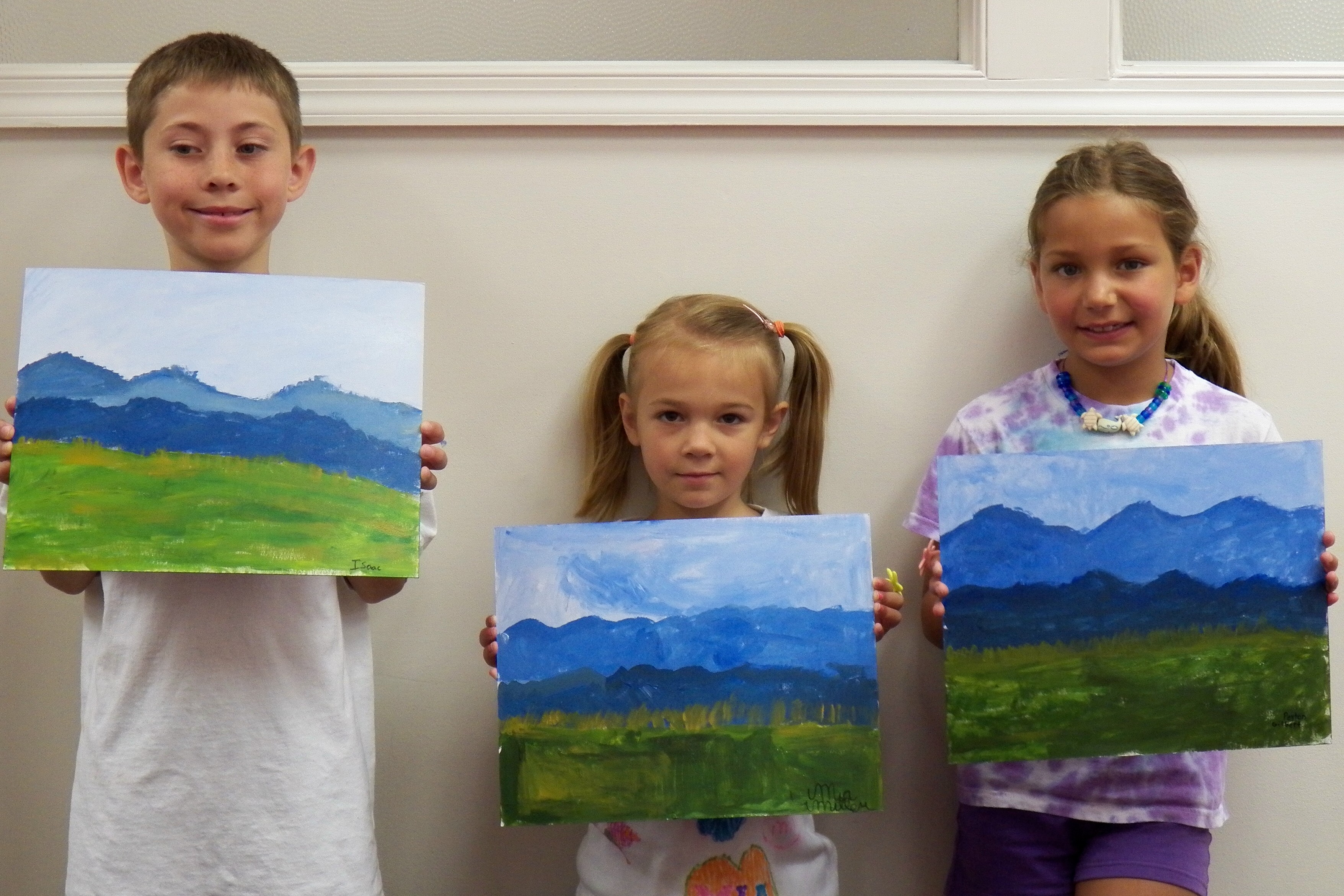 Next we painted a mountain landscape scene to learn more about paints, brushes, canvas, and palettes.