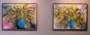 And since yesterday was the 3rd Thursday, it was Art Walk Night in Front Royal and I set up to do a demonstration at Delilah’s Art & Gifts on Main Street. It was very hot outside last night so I set up inside. I couldn’t decide what to paint so since I had the palette from the morning’s demo, I decided to do another version of the poppies that I had painted for the Garden Club.