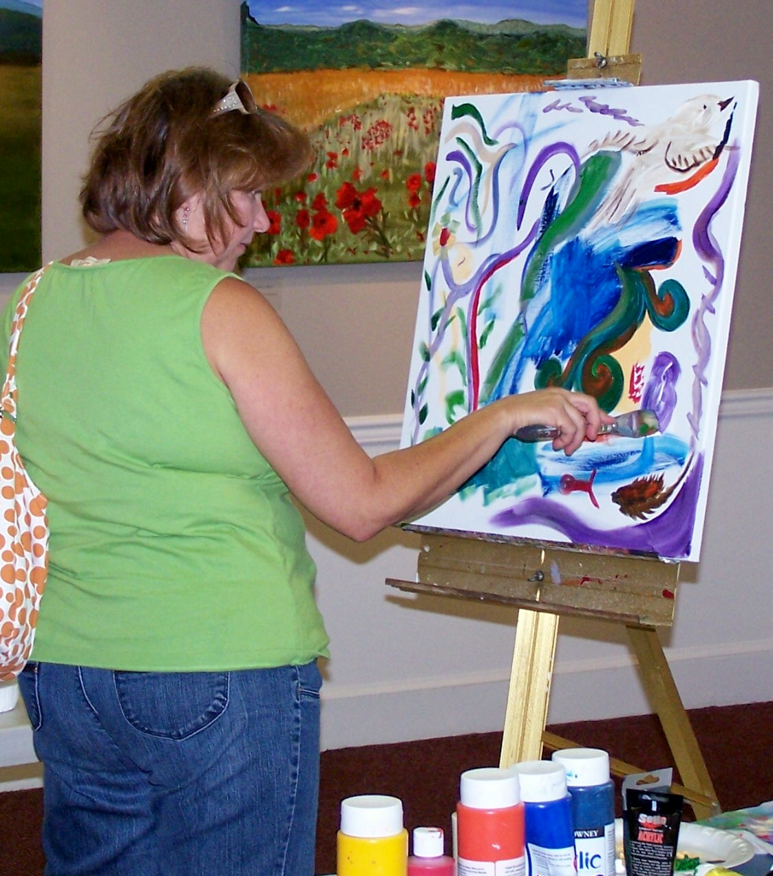 It’s always fun when little ones come with their parents. I was painting and this young lady came in with her folks and she was obviously a little tired but when I asked her if she would like to try painting she immediately said yes!