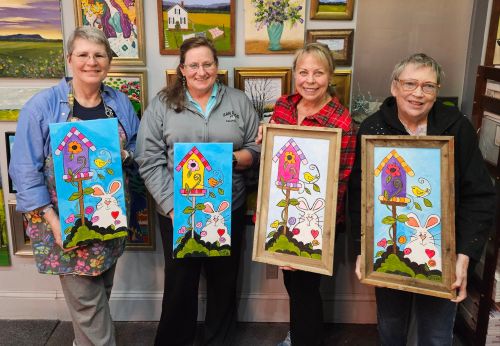 Yesterday these artists painted terrific works featuring a little bird with his mailbox nest. Nice work all around! Check out our upcoming events here.