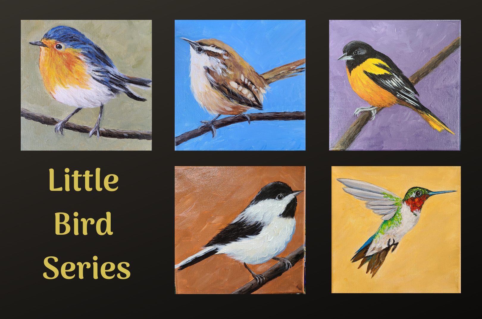 Our Little Bird Series begins this Thursday. We will be painting one every three weeks or so into the fall. Don’t worry it you can’t make every session. We will have a few make-up sessions along the way so you can catch up if you want to do them all. There is only a couple of seats left in the first one…the little bluebird….so register now by clicking here.