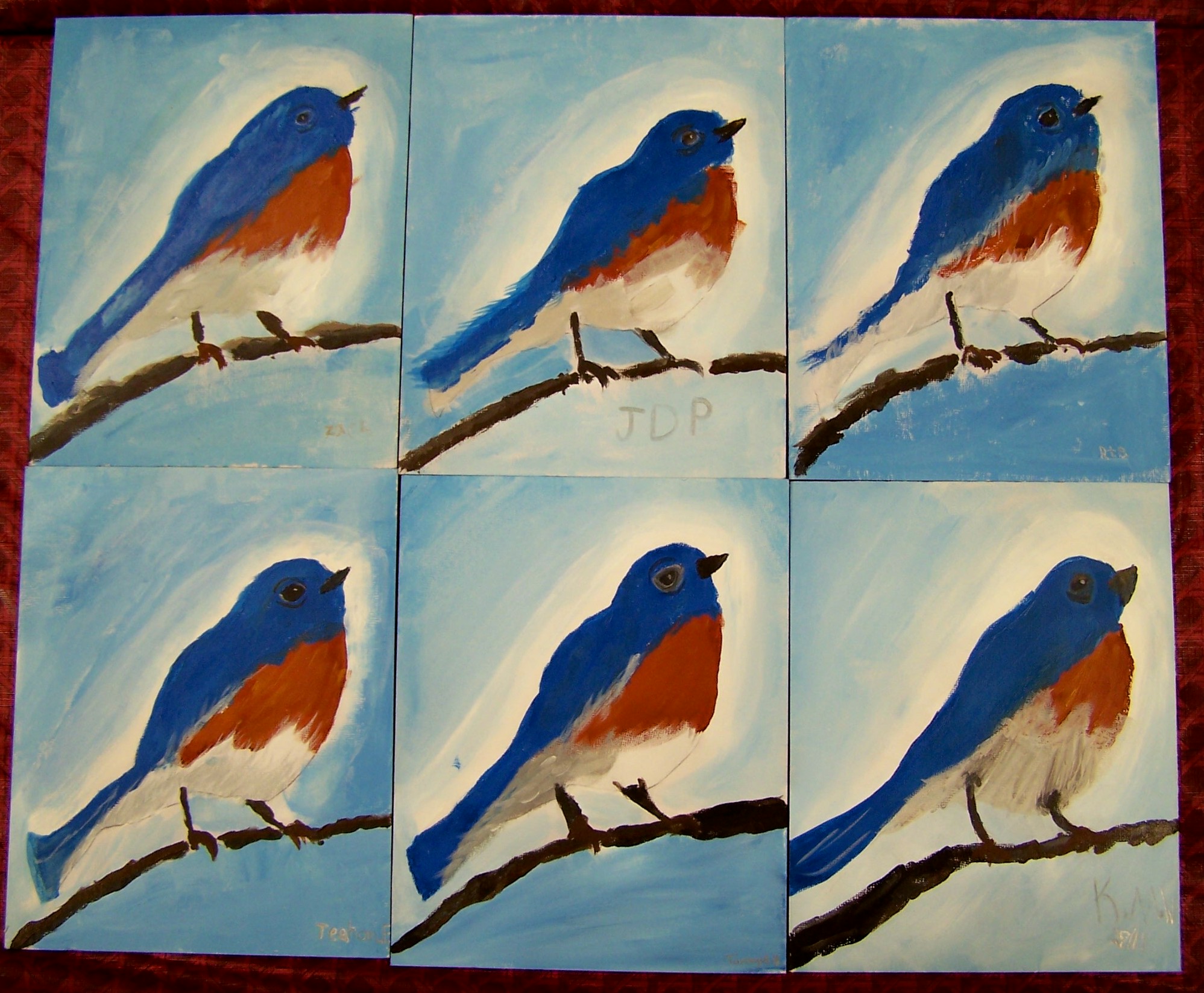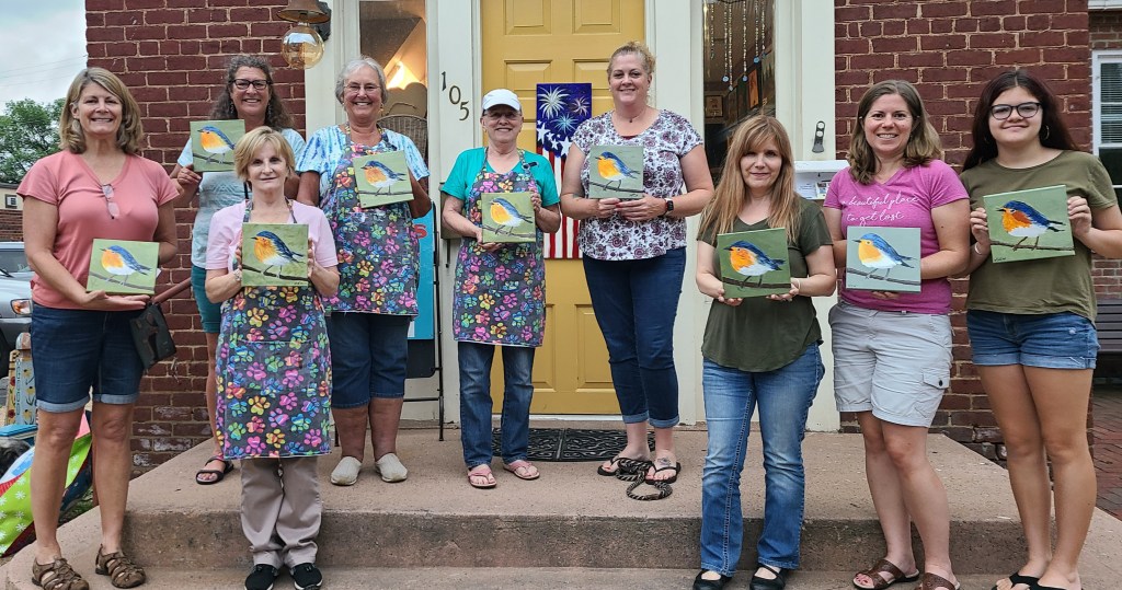We started our Bird Series last night and look at what a great bunch of little Eastern Blue Birds we created. Very nice work everyone!!!! The next one we will do is the Carolina Wren on July 1st. Click here for more info and to register. We have several more coming in the series so stay tuned. And if you miss one, not to worry…we will have a make-up session if you want to do one that you miss. Come join in the fun on this little series of birds.