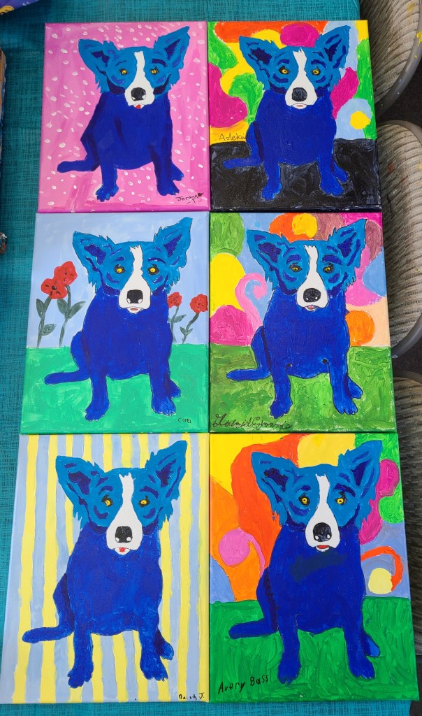 The Art Campers painted Rodrigue’s Blue Dog yesterday. They are fabulous! Nice work.