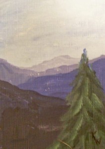 I am working on several versions of the view of Signal Knob in miniature for a commission. Here are a couple of them. They are acrylic on 4″x6″ canvas.