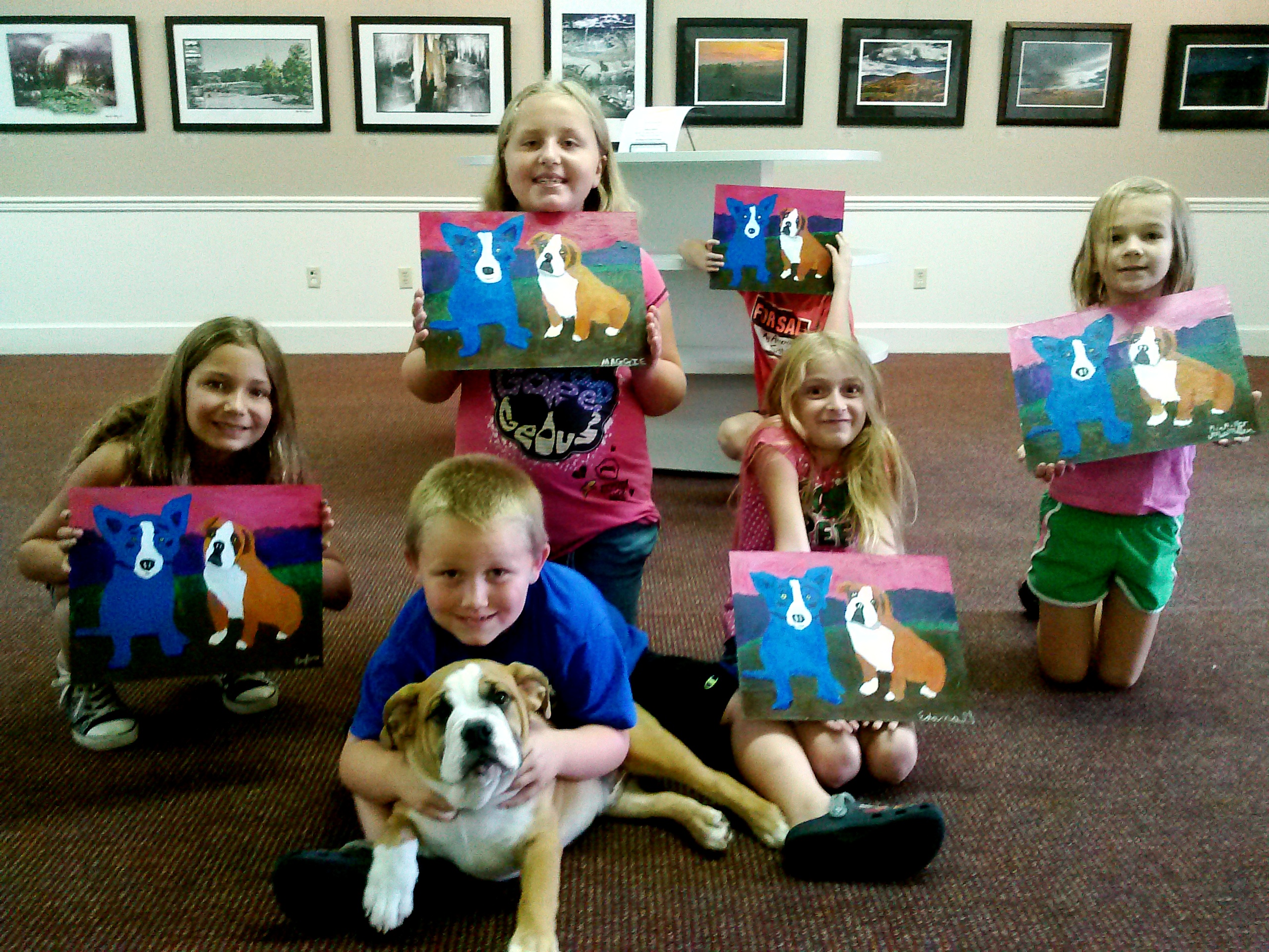 Posted in Art Camp, Dogs, tagged acrylic, Art Camp, Blue Dog by kids, Blue Ridge Arts Council, Bulldog, Dogs, English Bulldog, George Rodrigue, Virginia Artist on July 24, 2013|