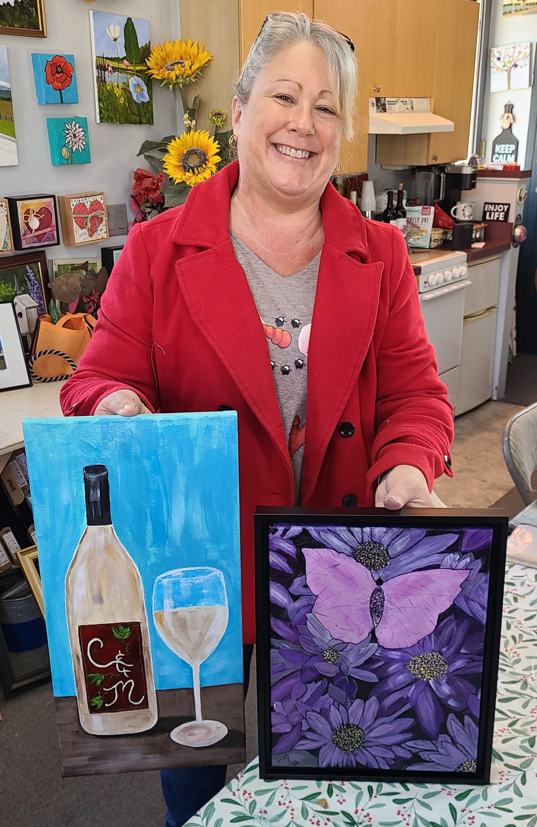 You know we have ongoing weekly Art Classes for Adults and Kids at The Studio. These are held every Wednesday and Thursday. Click here for more information and details. And from time to time one of the regular students brings a friend with them to paint. This happened last week when Andrea’s friend Candy was visiting. They are both from New Hampshire originally and now Candy and her husband are traveling the country, living in their RV. I want to do that! It was so much fun hearing about her adventures while helping her create this little painting that will help her remember her time with us. Come join us for a class soon. You’ll love it too! Contact kwalker@kellywalkerstudios.com to schedule a class.