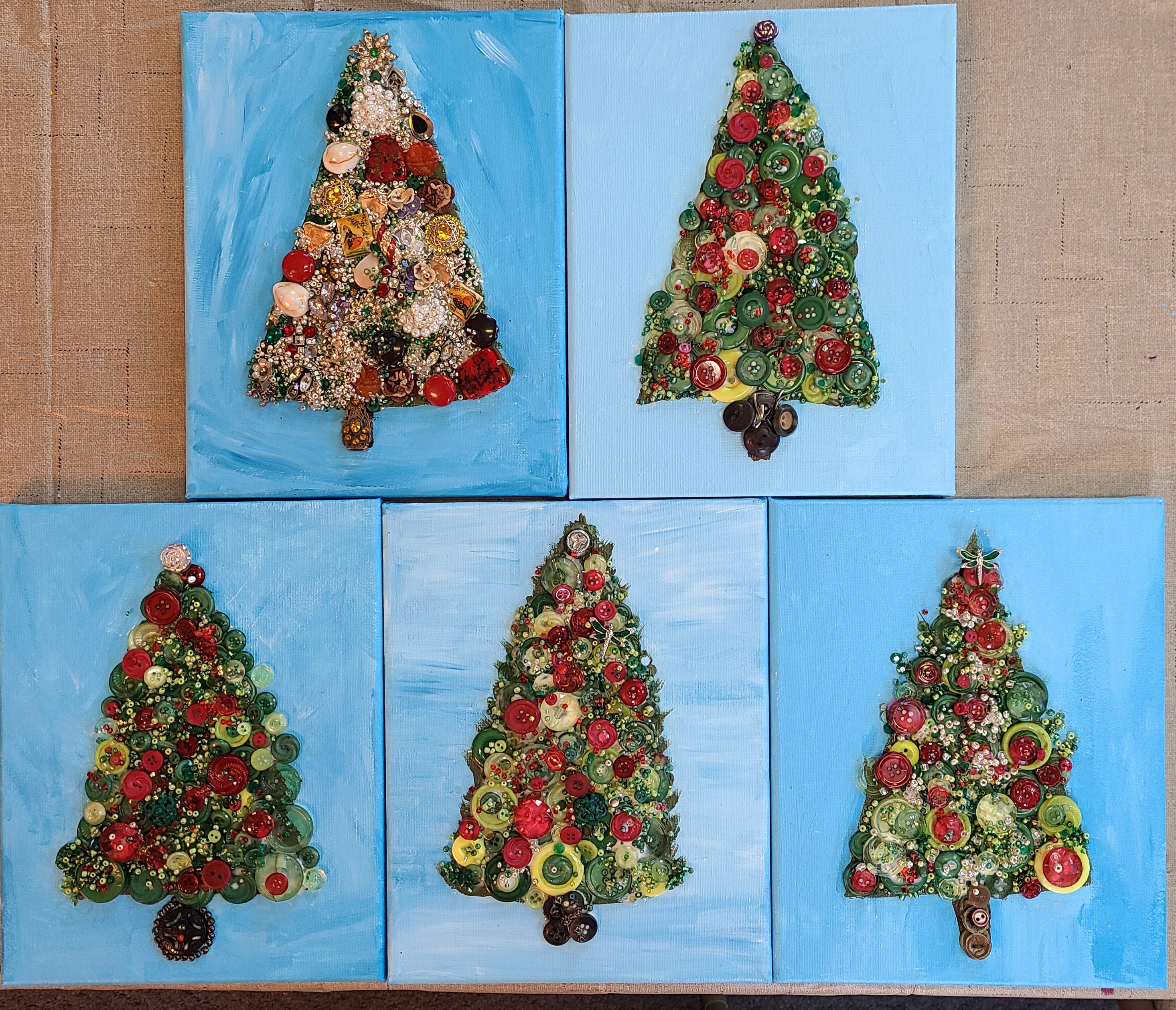 We had so much fun last night creating Button Trees…and one using earrings! They look terrific. We have one more session planned for Sunday, December 13th at 1 pm. Click here to register. Space is limited.