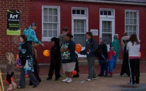 OMG! What a night! The artists at Delilah’s greeted children with Halloween candy. We thought we had plenty this year but once again we ran out after an hour. Here is Fortune Teller Jackie giving candy to the wonderfully dressed up children.