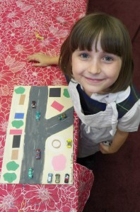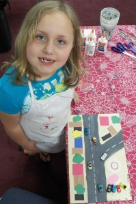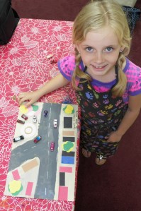 Here are Emma, Maggie and Olivia with their “Main Street” pop-up paintings.