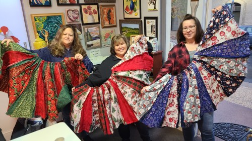 Shannon, Becky and Paula spent their holiday on Friday finishing their Big Star Quilts. (See that here.) And as if sewing for 3 hours wasn’t enough they went on to complete a Rag Tree Skirt. These girls are awesome!!!! We love sewing and quilting at The Studio. Didn’t they do a fantastic job???!!!! Don’t you want to join in the fun. Check out upcoming events at The Studio here.