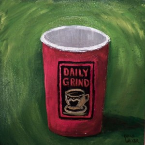 The Daily Grind, acrylic on gallery wrap canvas, 10″x10″. This is one of the paintings in the “Cup of Joe” series that is currently on display at the Daily Grind on Main Street in Front Royal. This painting is SOLD but prints of this paintings are available at Delilah’s for $15 or by contacting kwalker@doubledogdesigns.com .