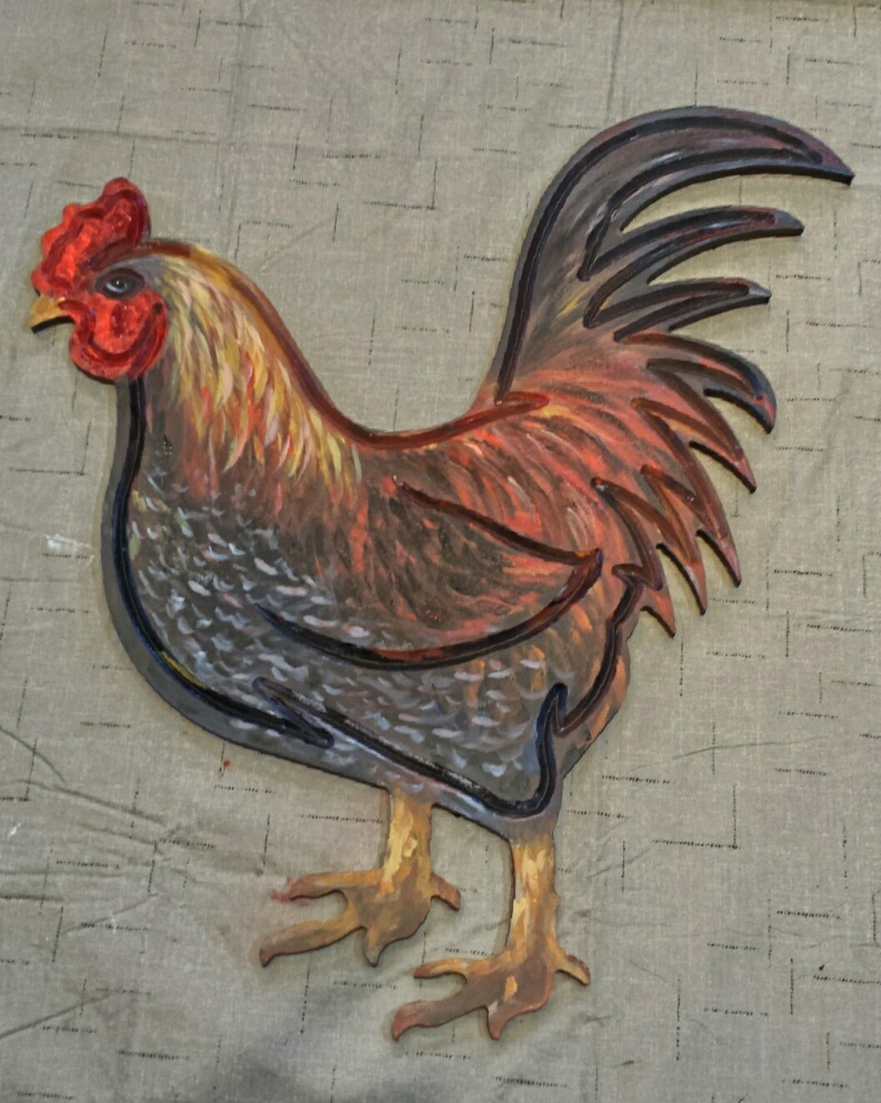 She purchased this large cut-out of a rooster and wanted it painted. It was a little bit of a challenge as it had the grooves cut in it but in the end that made it really interesting.