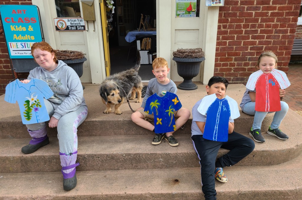 Yesterday the kids had an extra special treat as they painted Popsicle Door Hangers. They loved them. One student who had painted one already with me at art camp painted a jersey for her dad’s upcoming birthday. And to top off a great class Prissy came to pickup her girl from class so she got to be in the photo. And then as out adult class got ready to start our little friend Charlotte was with her mom for the beginning of the class and we gave her a popsicle to paint. She liked hers so much she wanted to give it a lick!