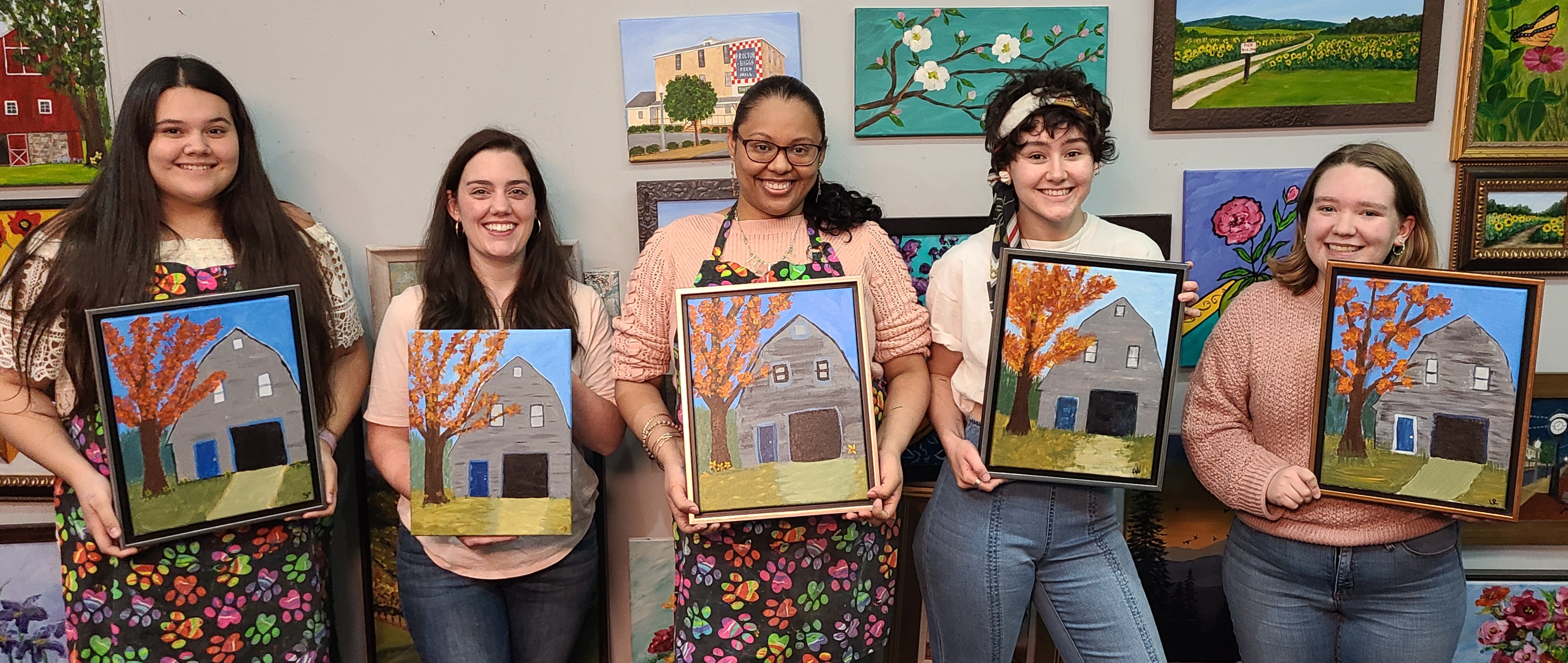 Did you know that if you miss a Paint Party that you really would love to do you can contact Kelly and set up a time to make it up? That’s what Jackie, Barbara and Beth did recently as they wanted to complete their Four Season series with the Fall Barn. Didn’t they turn out great?! Now to come up with our new Four Season idea for 2021.