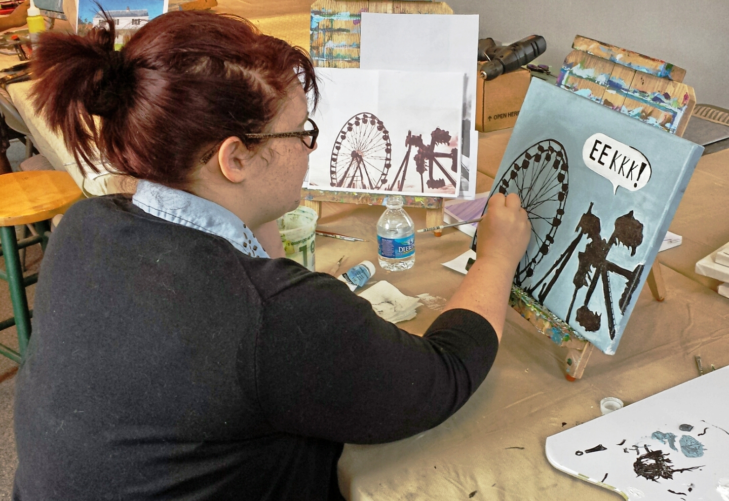 Logan, a long-time art student and VERY talented painter, chose to paint an interesting view of the carnival. So clever. Super work Logan.