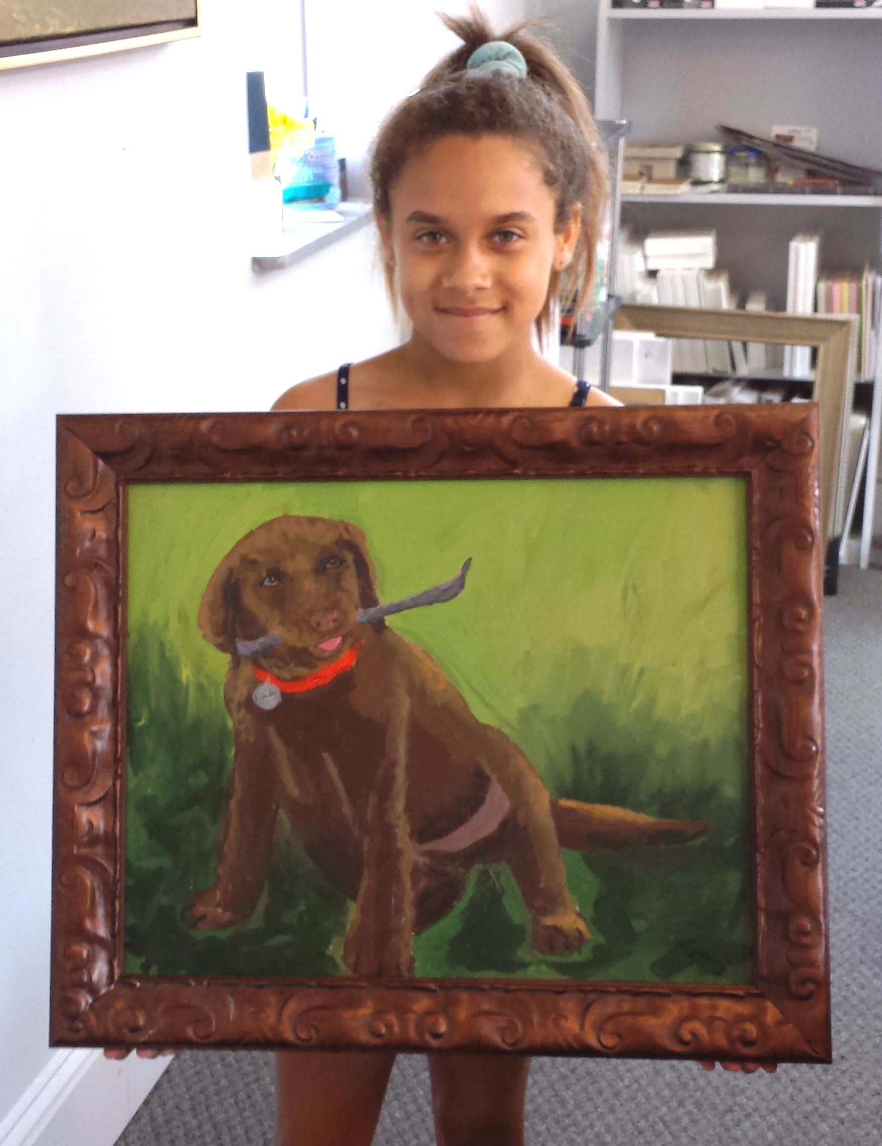 I had a small but talented group for the two-day Art Camp this week. Zoey, a new student for me, did a fabulous job painting a cow from her grandparents farm and their cute chocolate lab pup, Lincoln.