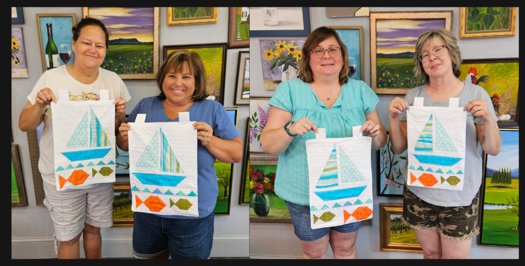 August Banner class was so much fun as these quilters made these lovely sailboat banners. They are so cute! Nice work ladies. Keep watching for the next monthly series to be announced soon.