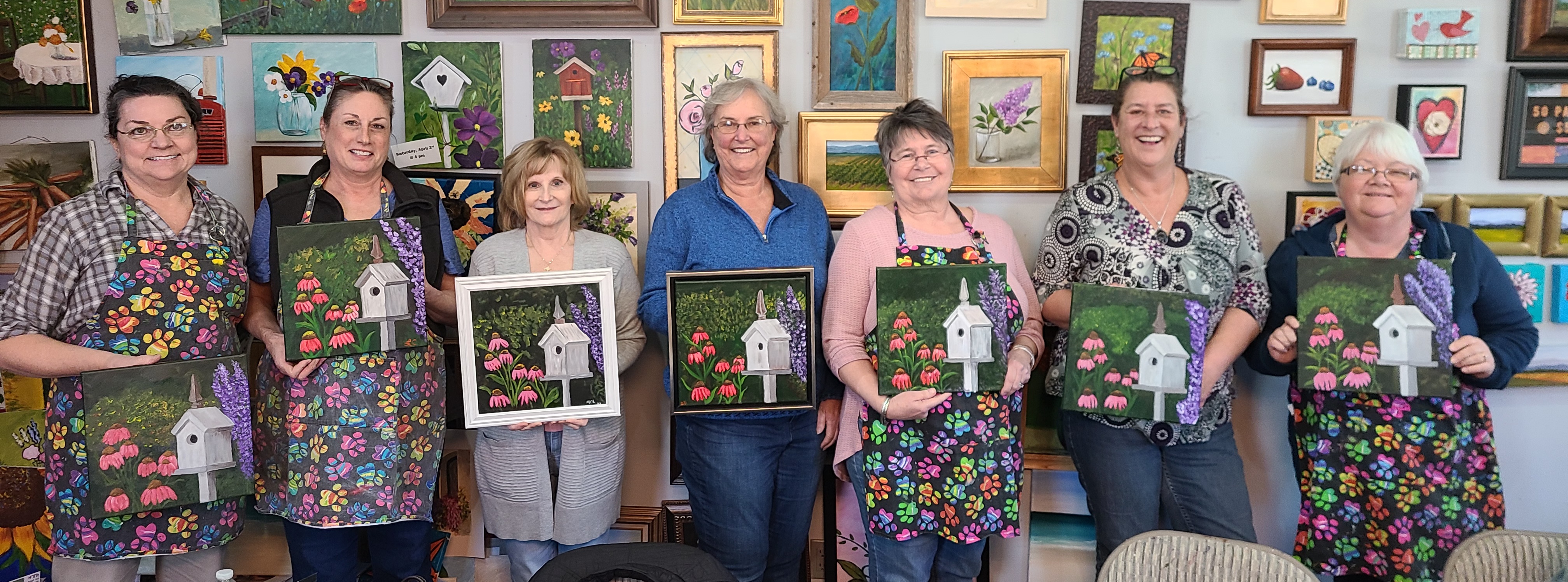 Last night we painted small Garden Gate paintings that included the frame in the class fee. What a great deal! And look how beautiful they are. Nice work everyone. We will schedule another small painting with frame soon. Be sure not to miss it!