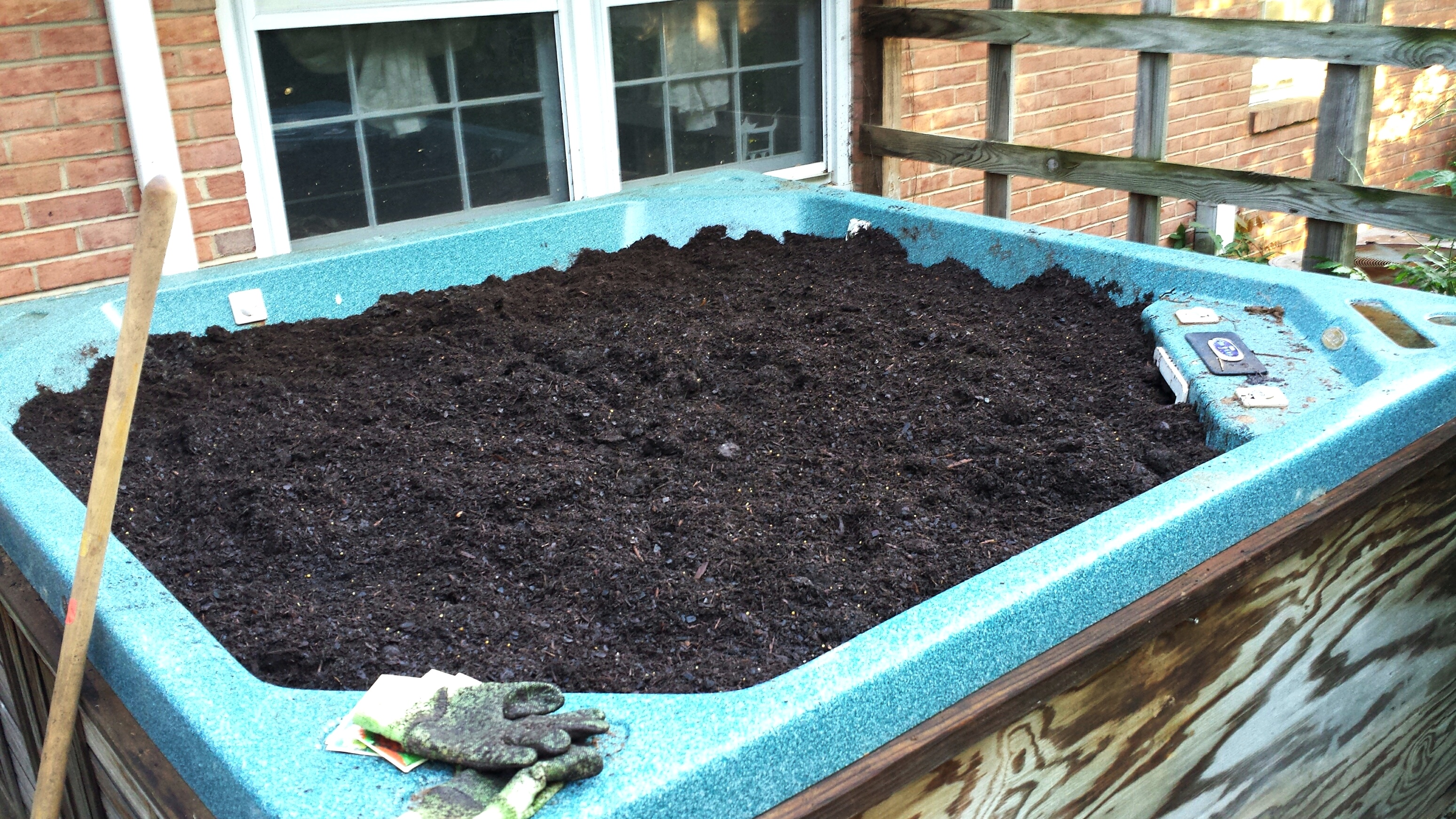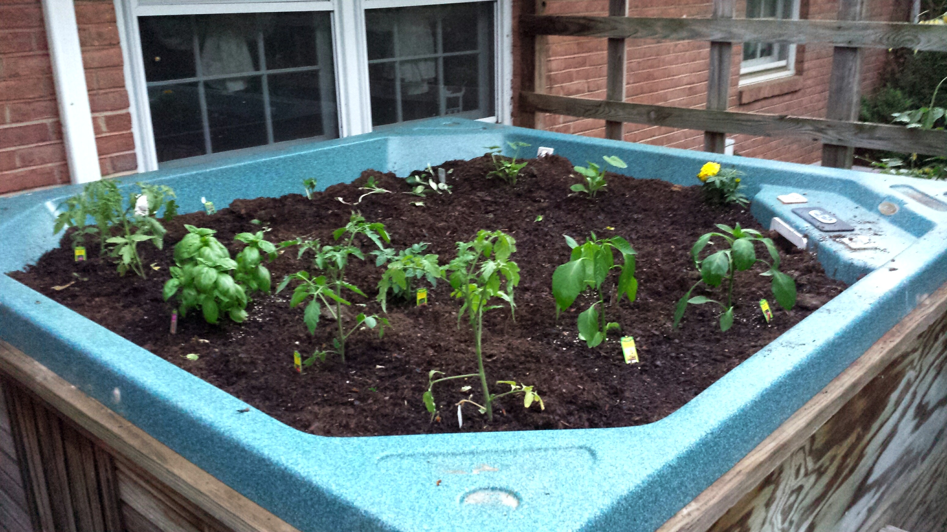 For years I enjoyed a hot tub on my deck but over the last three or four years I never used it. I tried many times to give it away to someone who would enjoy it but no takers and since it is soooo BIG and difficult to move I have “repurposed” it into my raised garden bed.