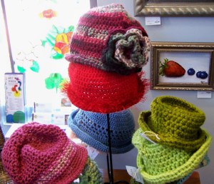 While I didn’t paint much over my vacation I did do quite a bit of crocheting. Here are the hats that I made that will be available at Delilah’s should you need a warm, fashionable hat during this cold weather. It’s very satisfying to put colors and textures together to come up with new hats.